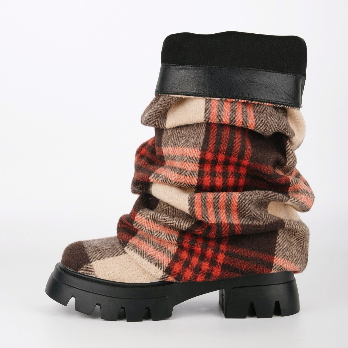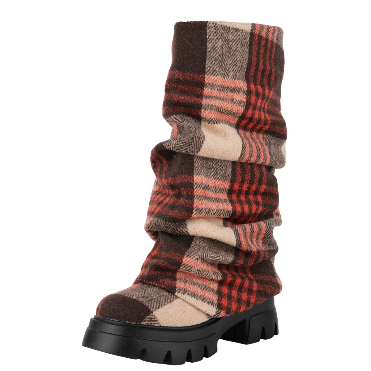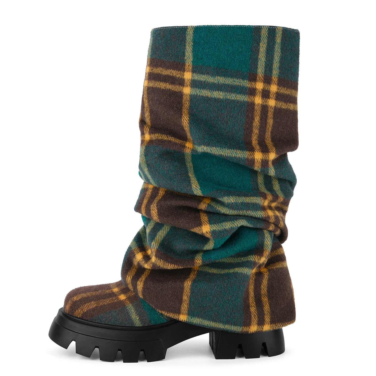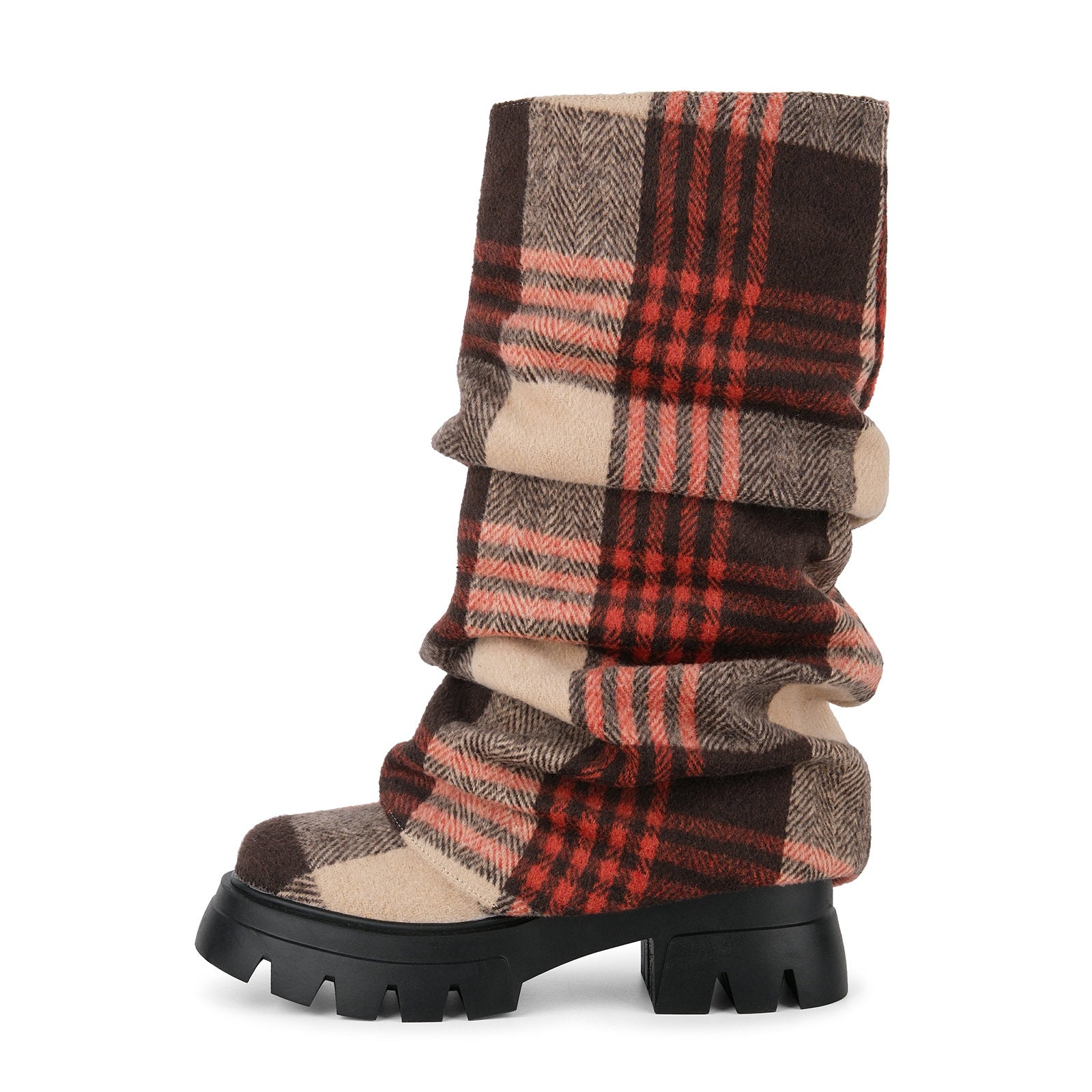 Plaid Pleated Fold Over Mid-Calf Boots