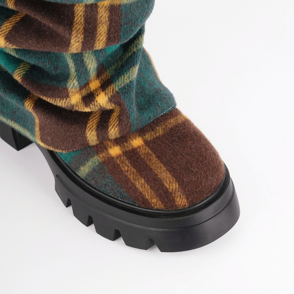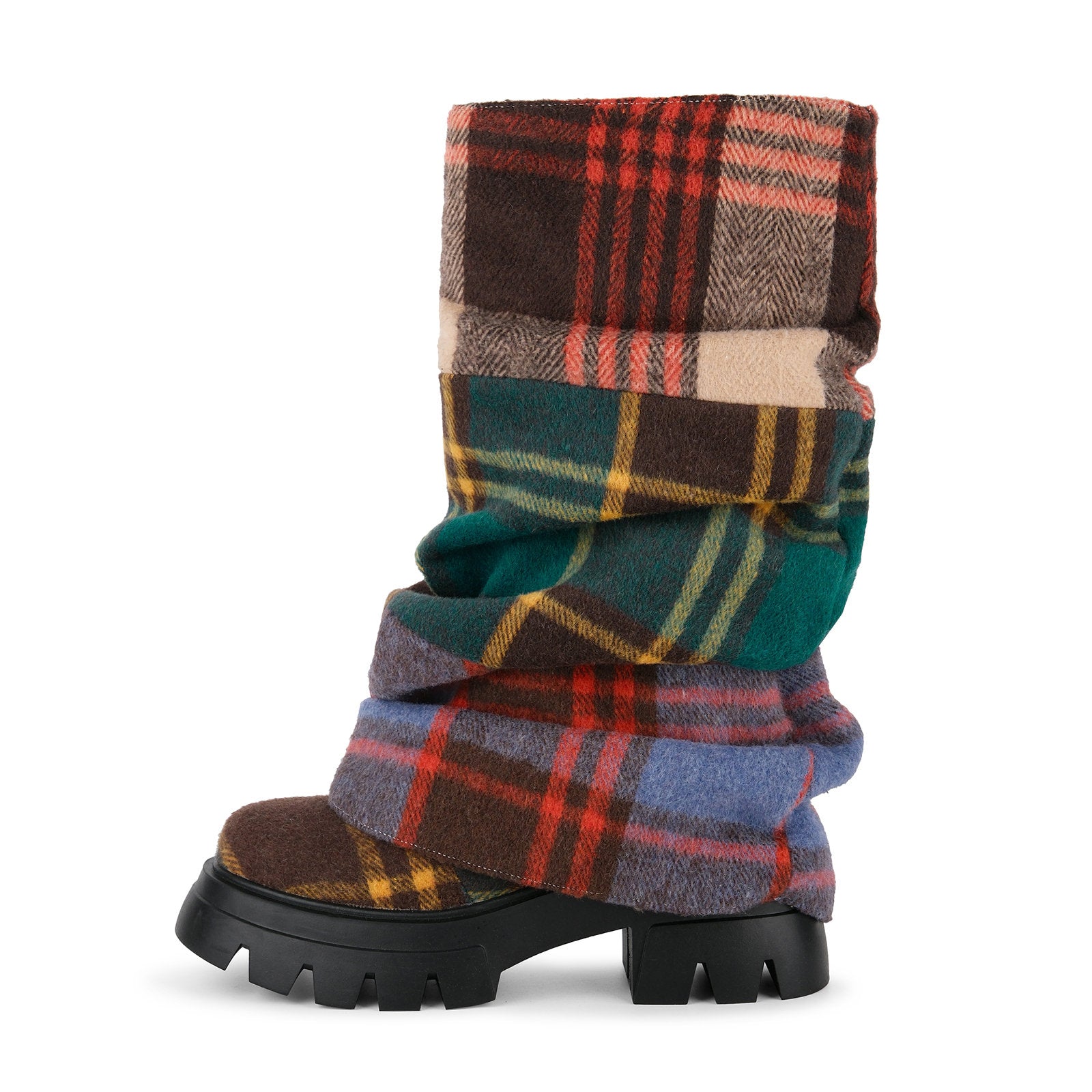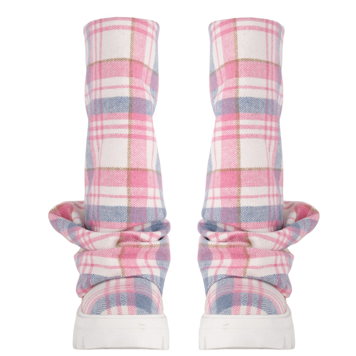 Plaid Pleated Fold Over Mid-Calf Boots