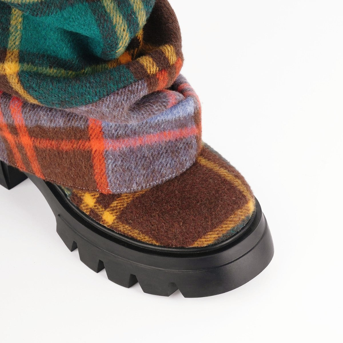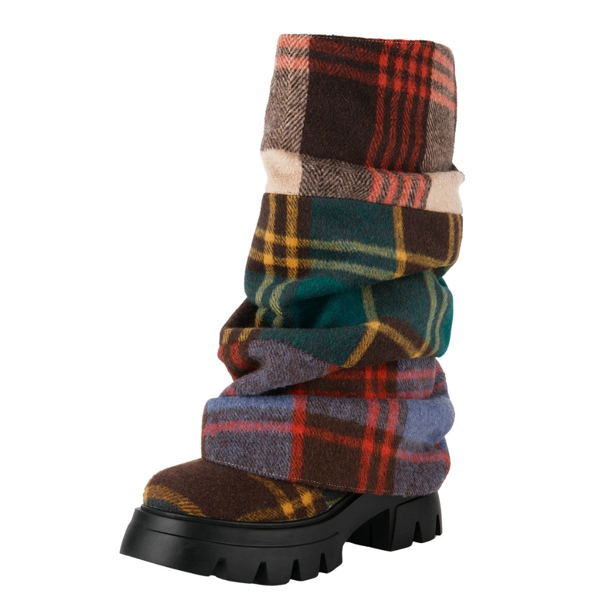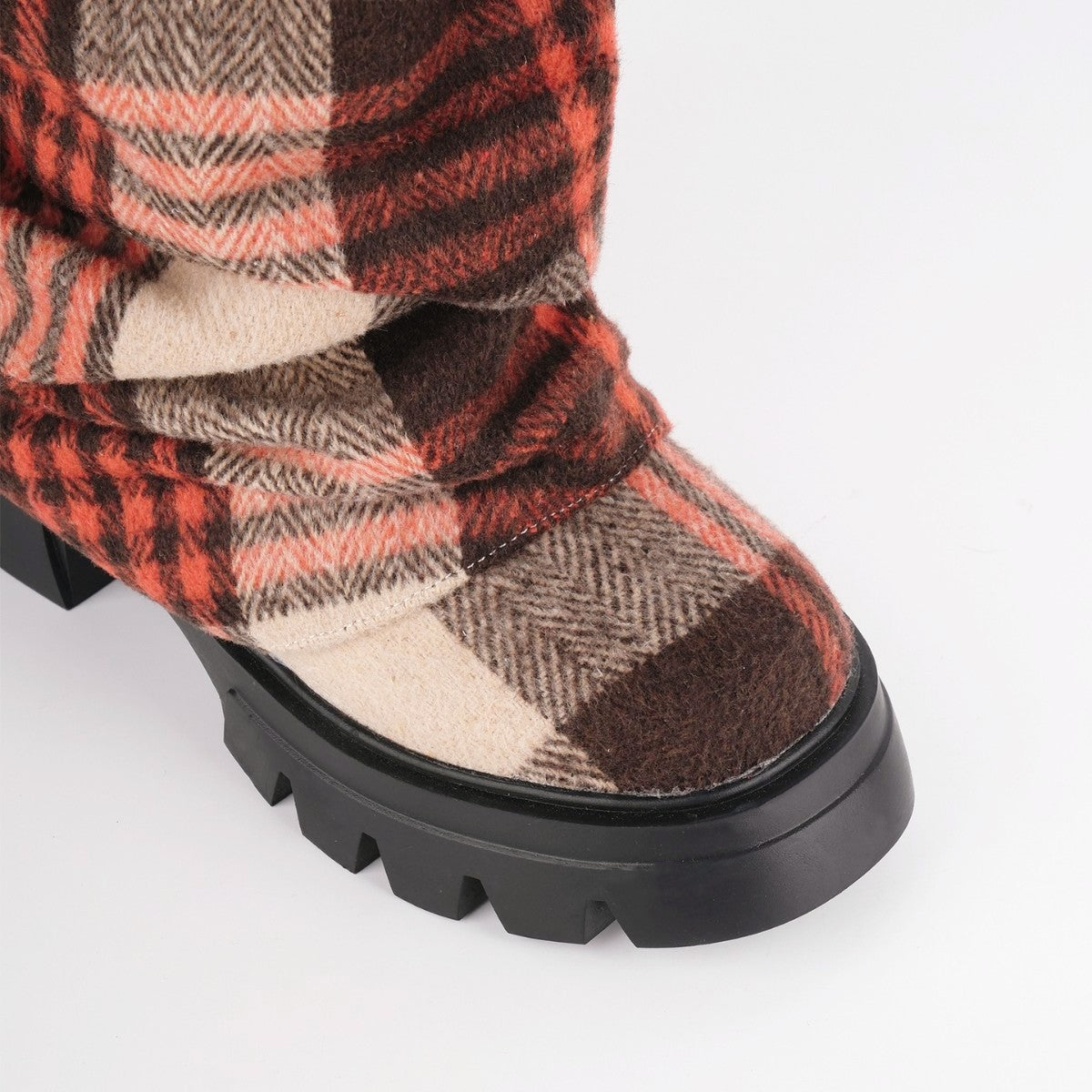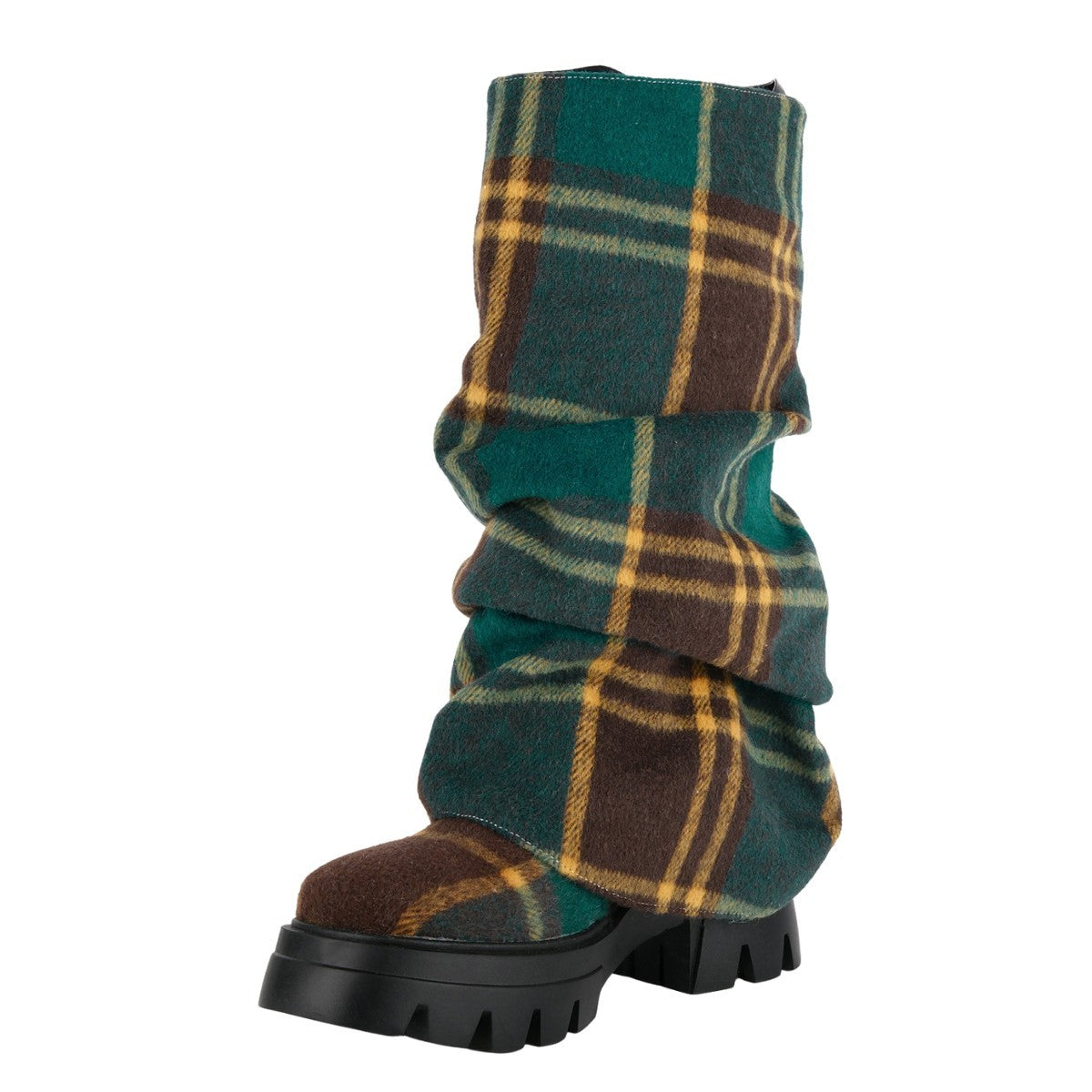 Plaid Pleated Fold Over Mid-Calf Boots
