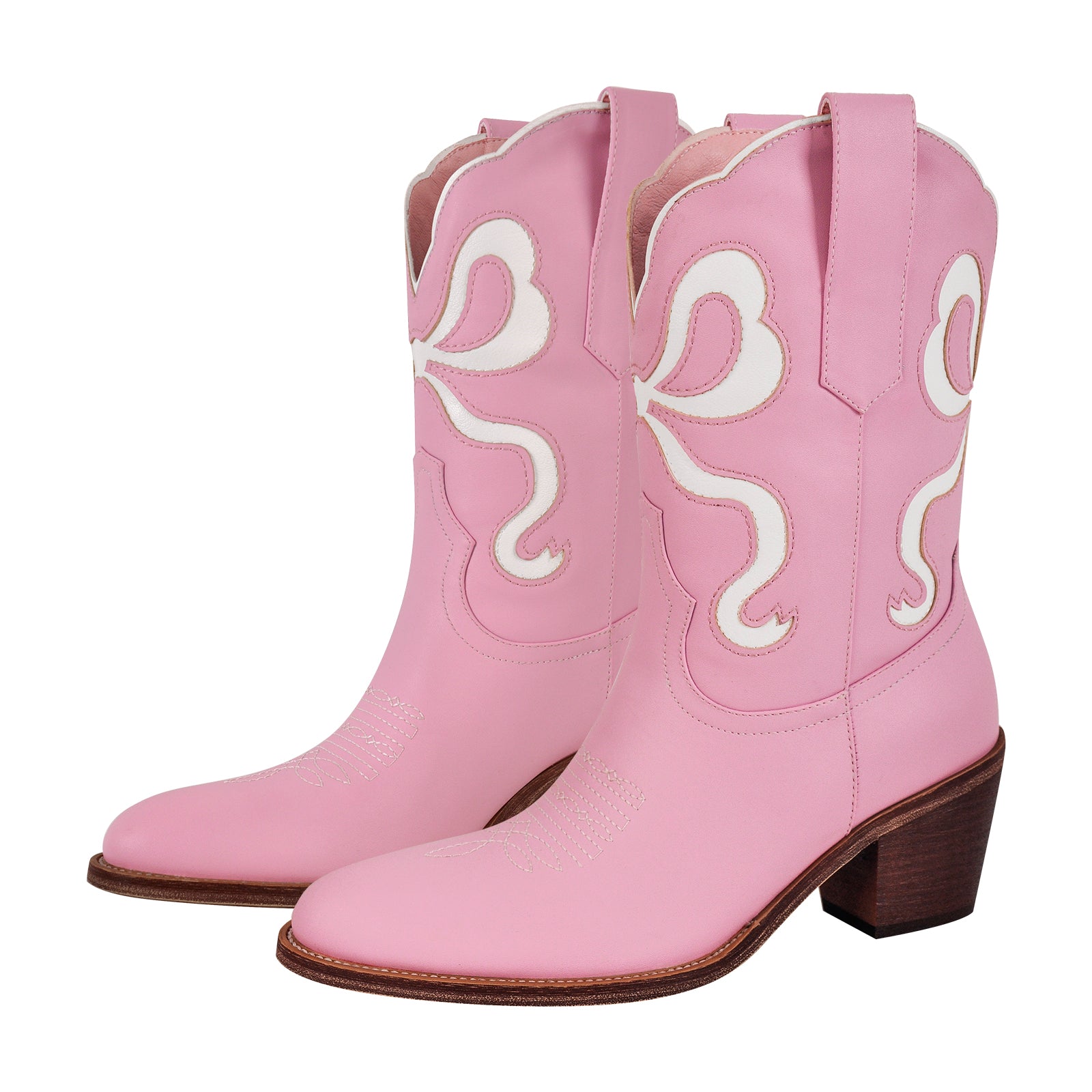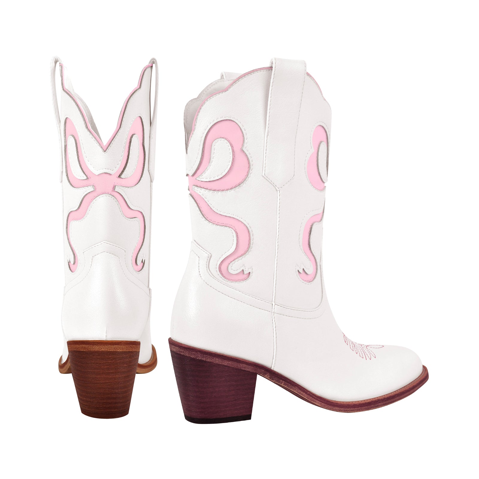Pointed Toe Pink Bow Cowgirl Ankle Boots