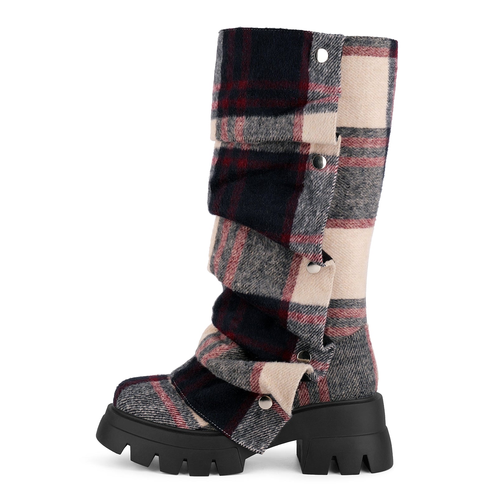 Plaid Platform Removable Mid-Calf Boots