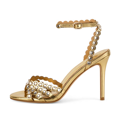 Pointed Toe Diamante Heart Buckle Strap Sandals