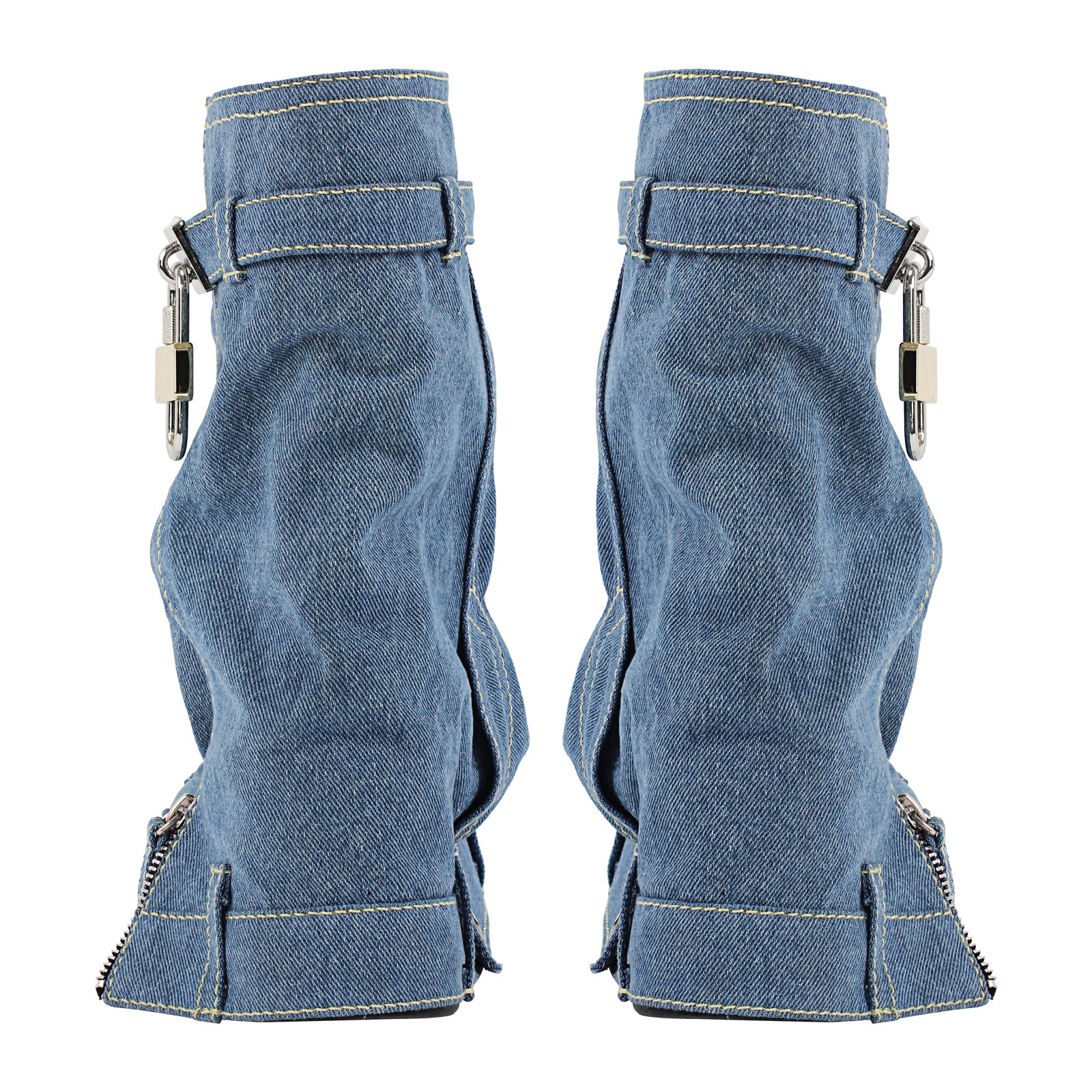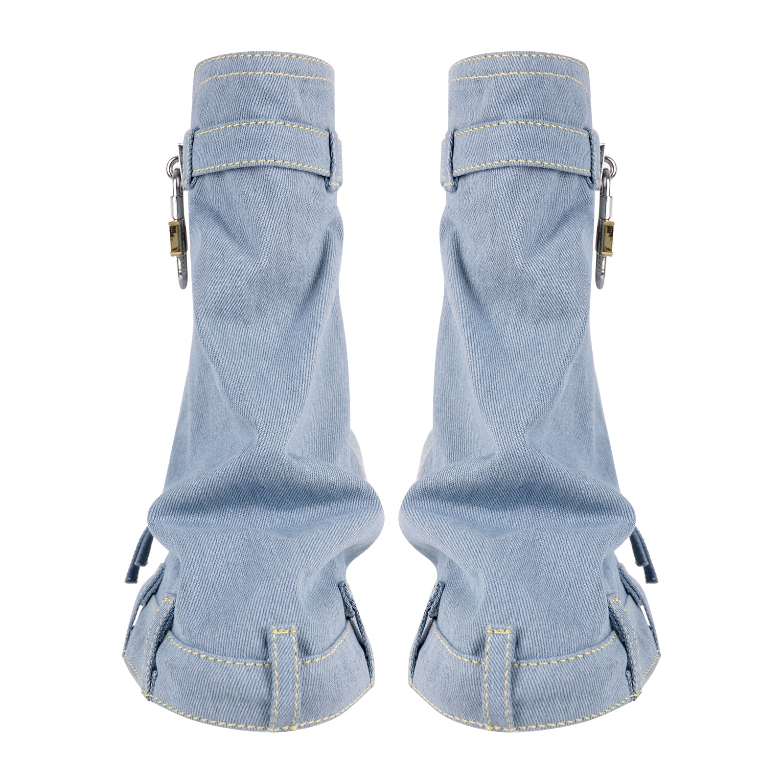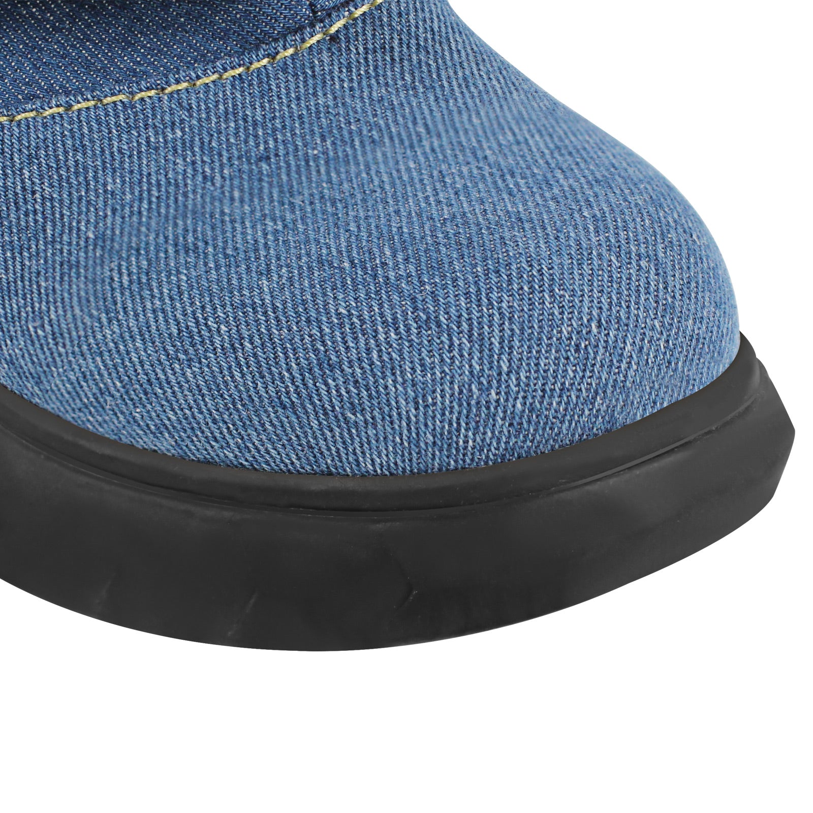Denim Round Toe Wedge Heel Mid-Calf Fold Over Boots