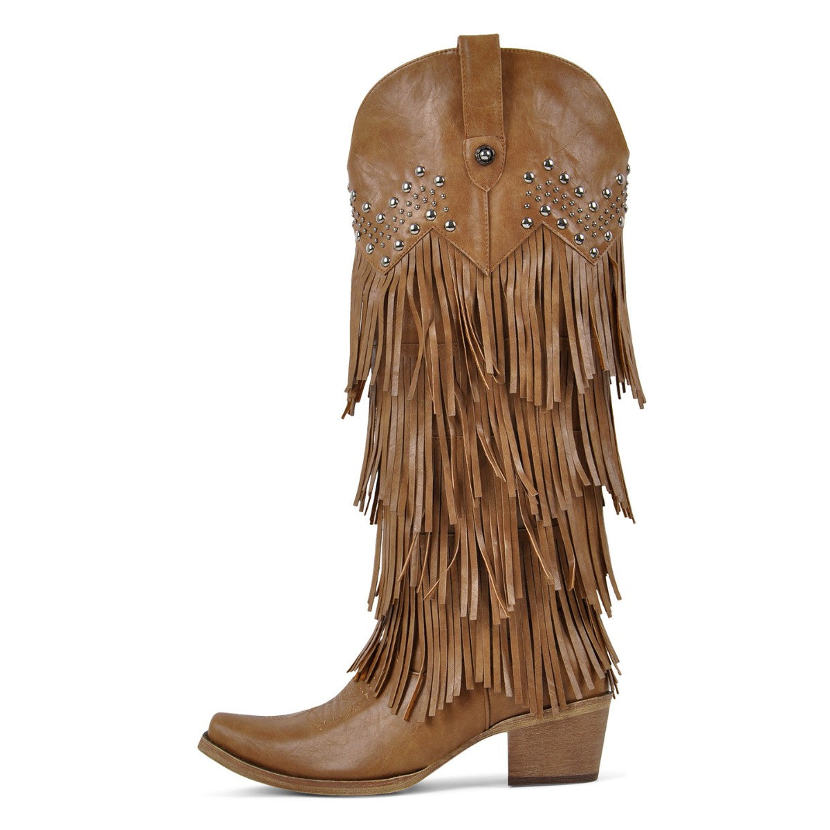 Rivet Fringe Knee High Western Boots$89.99 USD$119.99 USD
