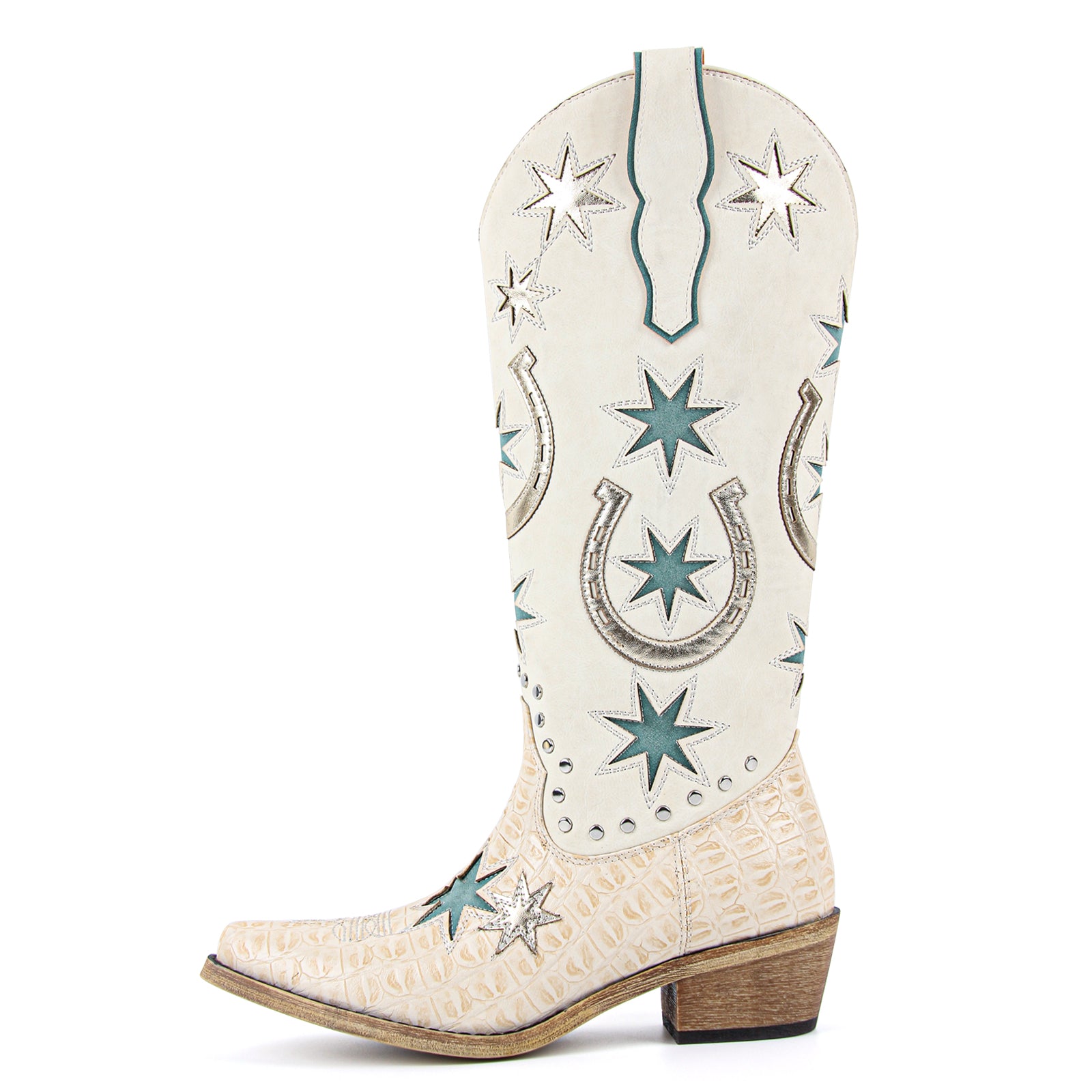 Pointed Toe Embroidery Knee High Western Boots$89.99 USD$99.99 USD