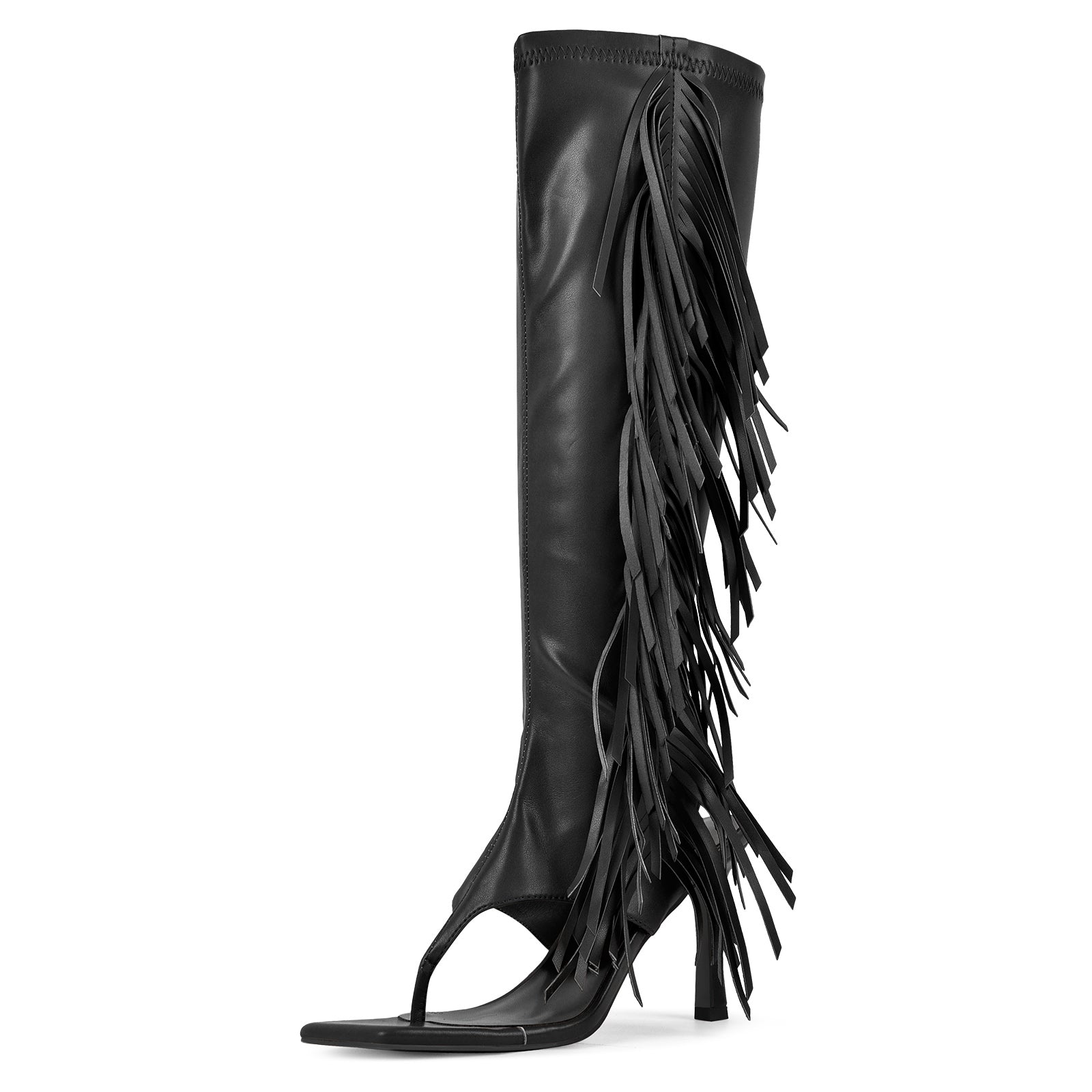 Square Toe Fringe Knee High Thong Boots$84.99 USD$109.99 USD