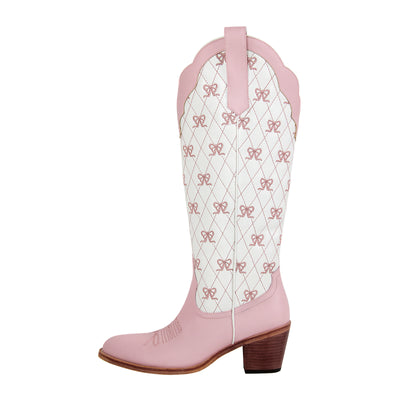 Pink Bow Embroidery Knee High Cowgirl Boots