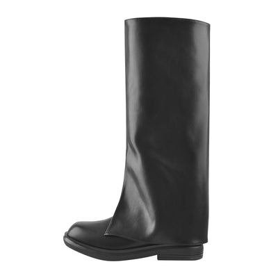Round Toe Pleated Fold Over Mid-Calf Boots