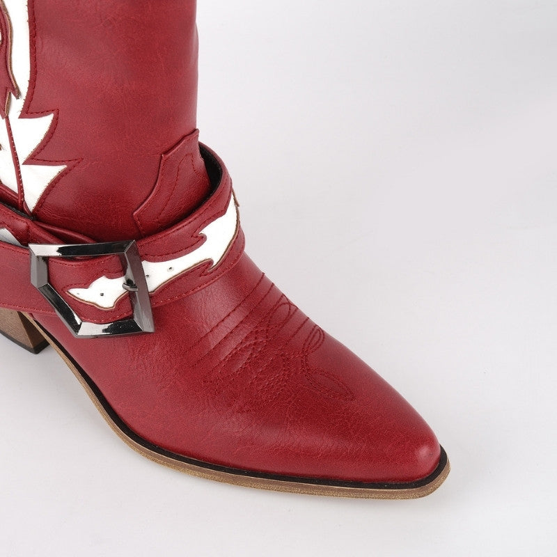 {"id":48512725483757,"title":"Red \/ US5","option1":"Red","option2":"US5","option3":null,"sku":"CD250841A-US5","requires_shipping":true,"taxable":true,"featured_image":{"id":44670234132717,"product_id":9070906310893,"position":1,"created_at":"2025-08-08T11:54:02+08:00","updated_at":"2025-08-08T11:56:13+08:00","alt":null,"width":800,"height":800,"src":"\/\/www.missheel.com\/cdn\/shop\/files\/CD250841A-1.jpg?v=1754625373","variant_ids":[48512725483757,48512725516525,48512725549293,48512725582061,48512725614829,48512725647597,48512725680365,48512725713133,48512725745901]},"available":true,"name":"Pointed Toe Buckle Strap Knee High Western Boots - Red \/ US5","public_title":"Red \/ US5","options":["Red","US5"],"price":8999,"weight":1800,"compare_at_price":10999,"inventory_management":"shopify","barcode":null,"featured_media":{"alt":null,"id":36396238110957,"position":1,"preview_image":{"aspect_ratio":1.0,"height":800,"width":800,"src":"\/\/www.missheel.com\/cdn\/shop\/files\/CD250841A-1.jpg?v=1754625373"}},"requires_selling_plan":false,"selling_plan_allocations":[]}