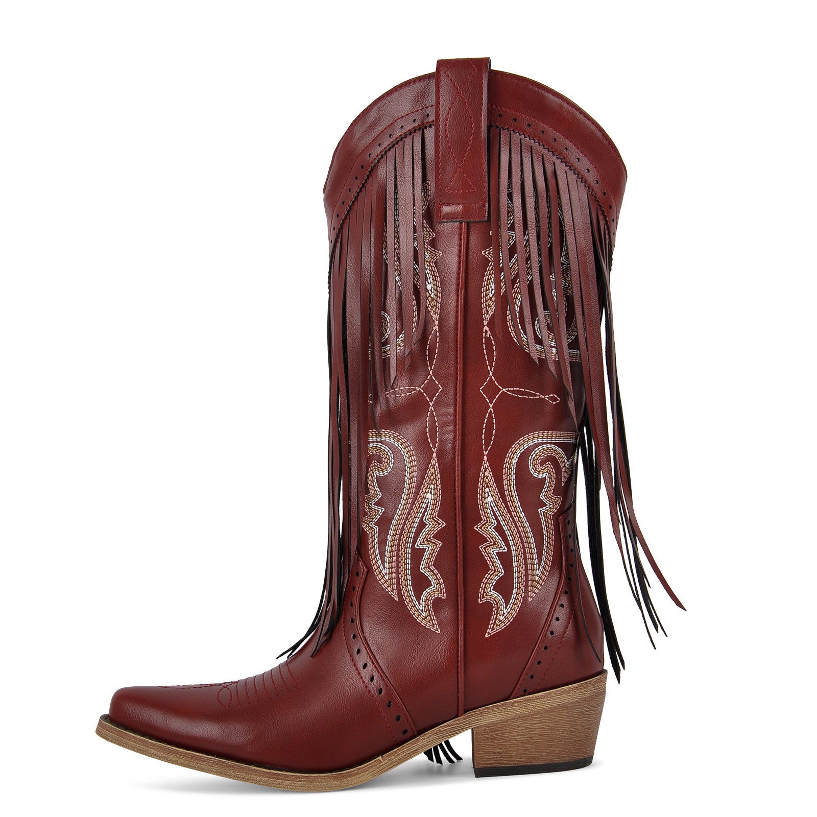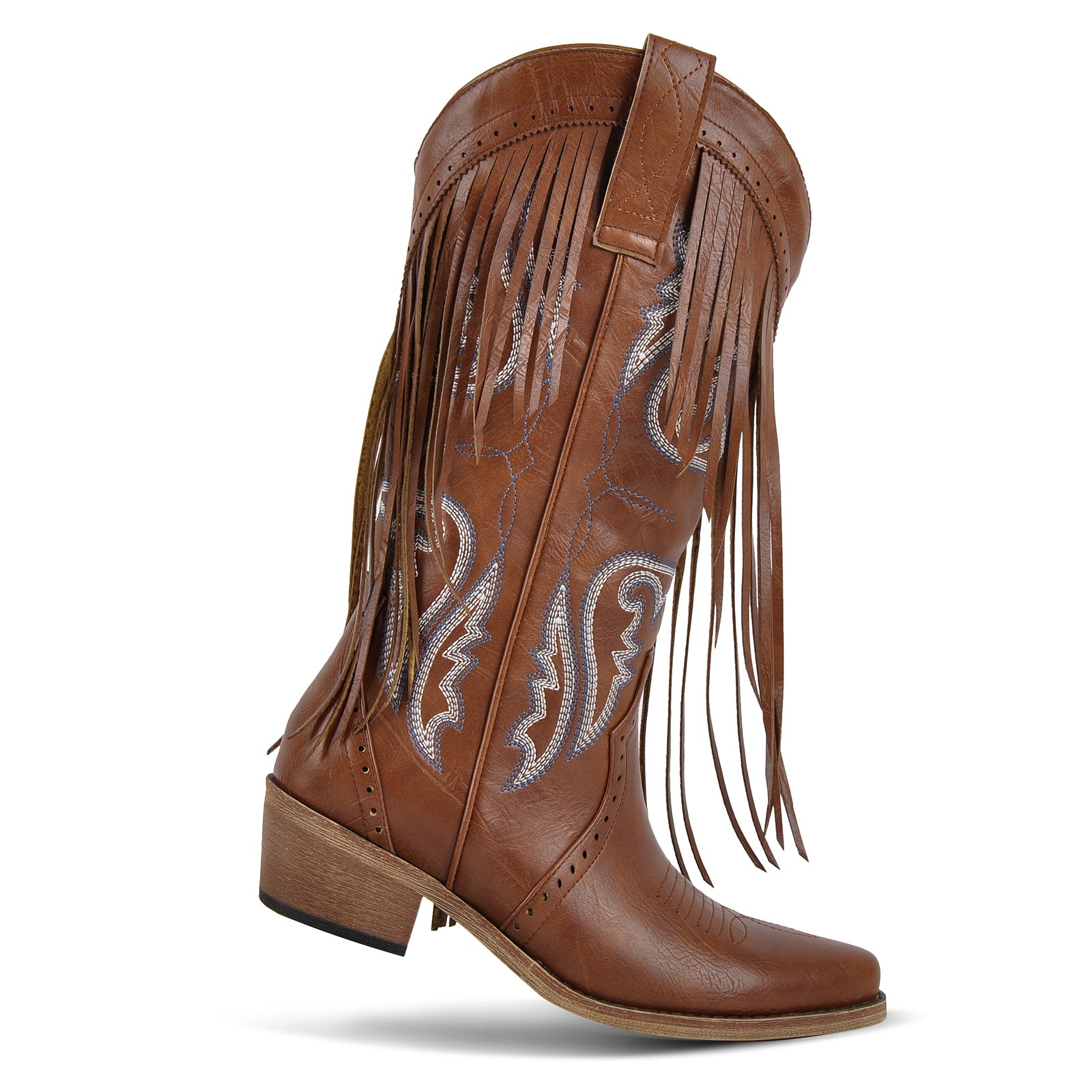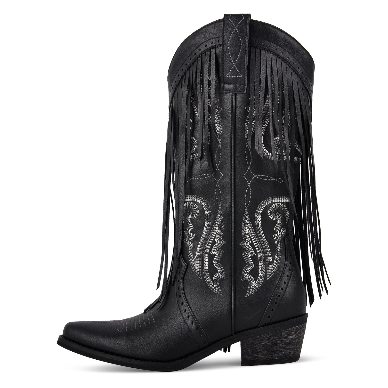 Fringe Embroidery Mid-Calf Western Boots