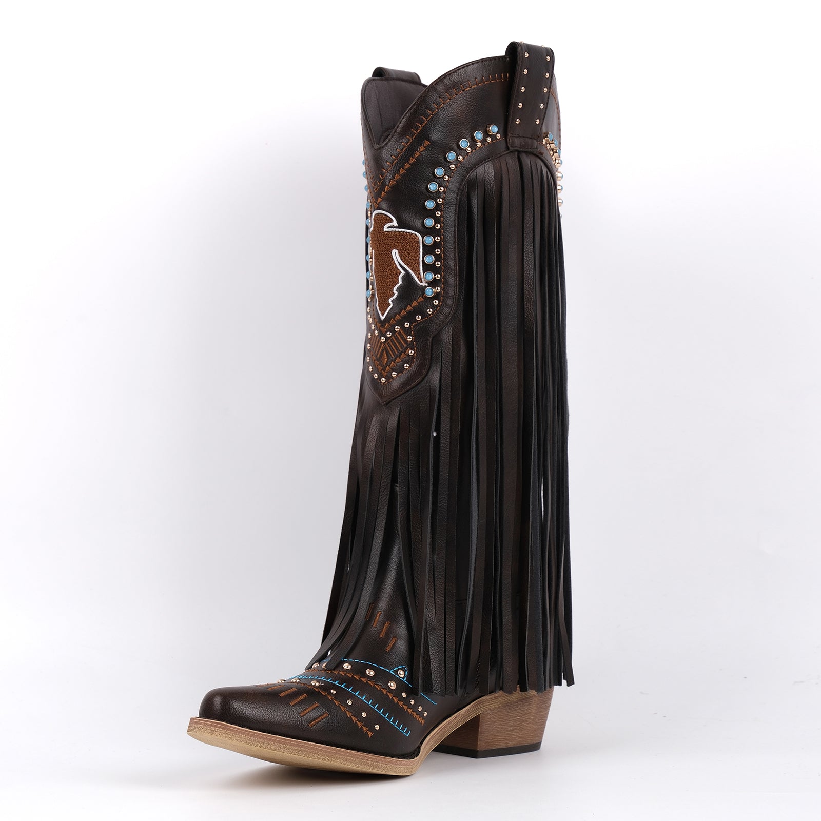 {"id":48426605576429,"title":"Dark Brown \/ US5","option1":"Dark Brown","option2":"US5","option3":null,"sku":"CD250715B-US5","requires_shipping":true,"taxable":true,"featured_image":{"id":44375441899757,"product_id":9053070655725,"position":1,"created_at":"2025-07-18T15:50:55+08:00","updated_at":"2025-07-21T10:02:41+08:00","alt":null,"width":1600,"height":1600,"src":"\/\/www.missheel.com\/cdn\/shop\/files\/CD250715B_1.jpg?v=1753063361","variant_ids":[48426605576429,48426605609197,48426605641965,48426605674733,48426605707501,48426605740269,48426605773037,48426605805805,48426605838573]},"available":true,"name":"Fringe Rivet Embroidery Knee High Western Boots - Dark Brown \/ US5","public_title":"Dark Brown \/ US5","options":["Dark Brown","US5"],"price":9999,"weight":1800,"compare_at_price":10999,"inventory_management":"shopify","barcode":null,"featured_media":{"alt":null,"id":36223108710637,"position":1,"preview_image":{"aspect_ratio":1.0,"height":1600,"width":1600,"src":"\/\/www.missheel.com\/cdn\/shop\/files\/CD250715B_1.jpg?v=1753063361"}},"requires_selling_plan":false,"selling_plan_allocations":[]}
