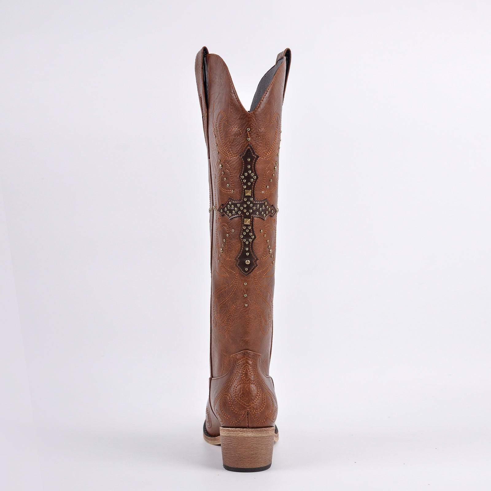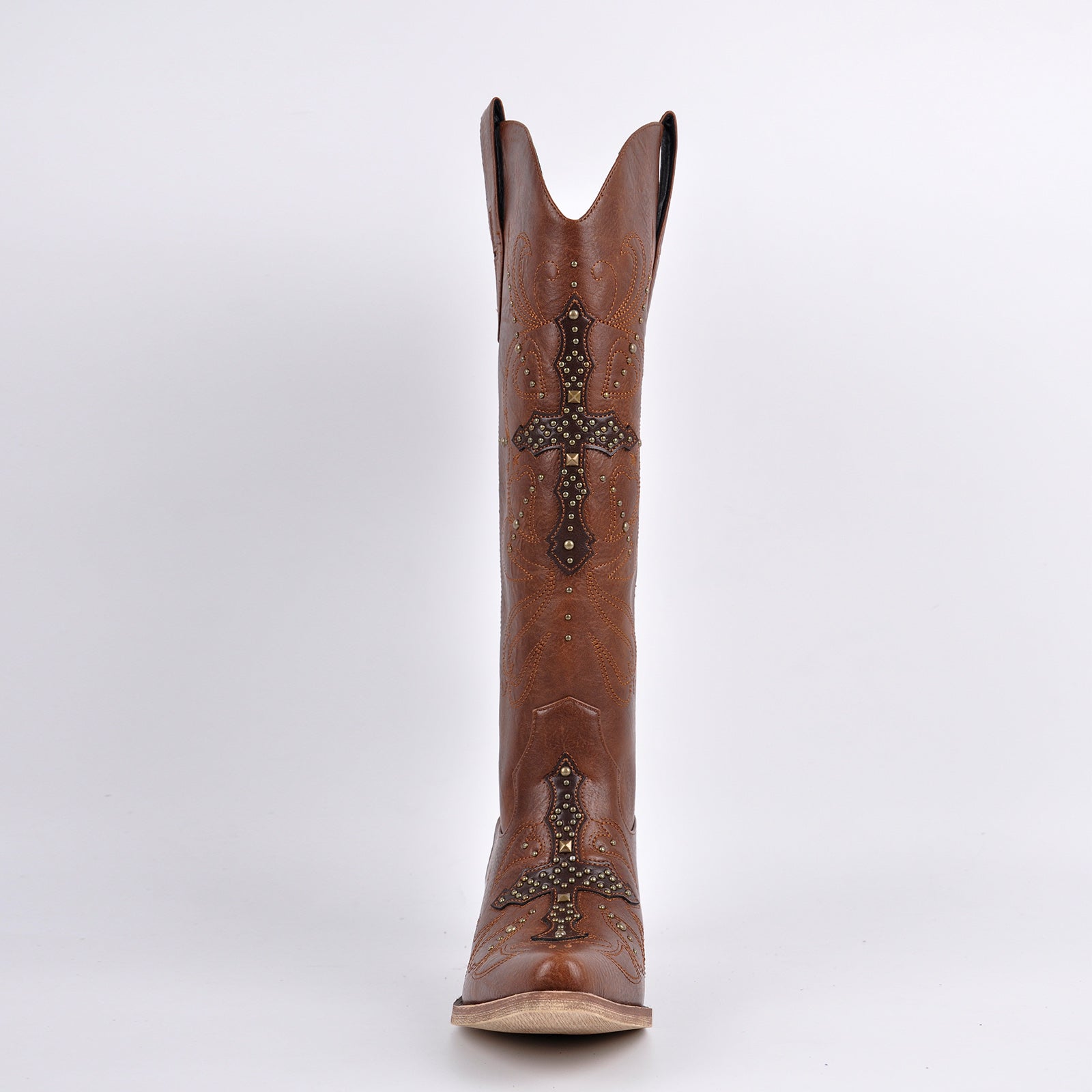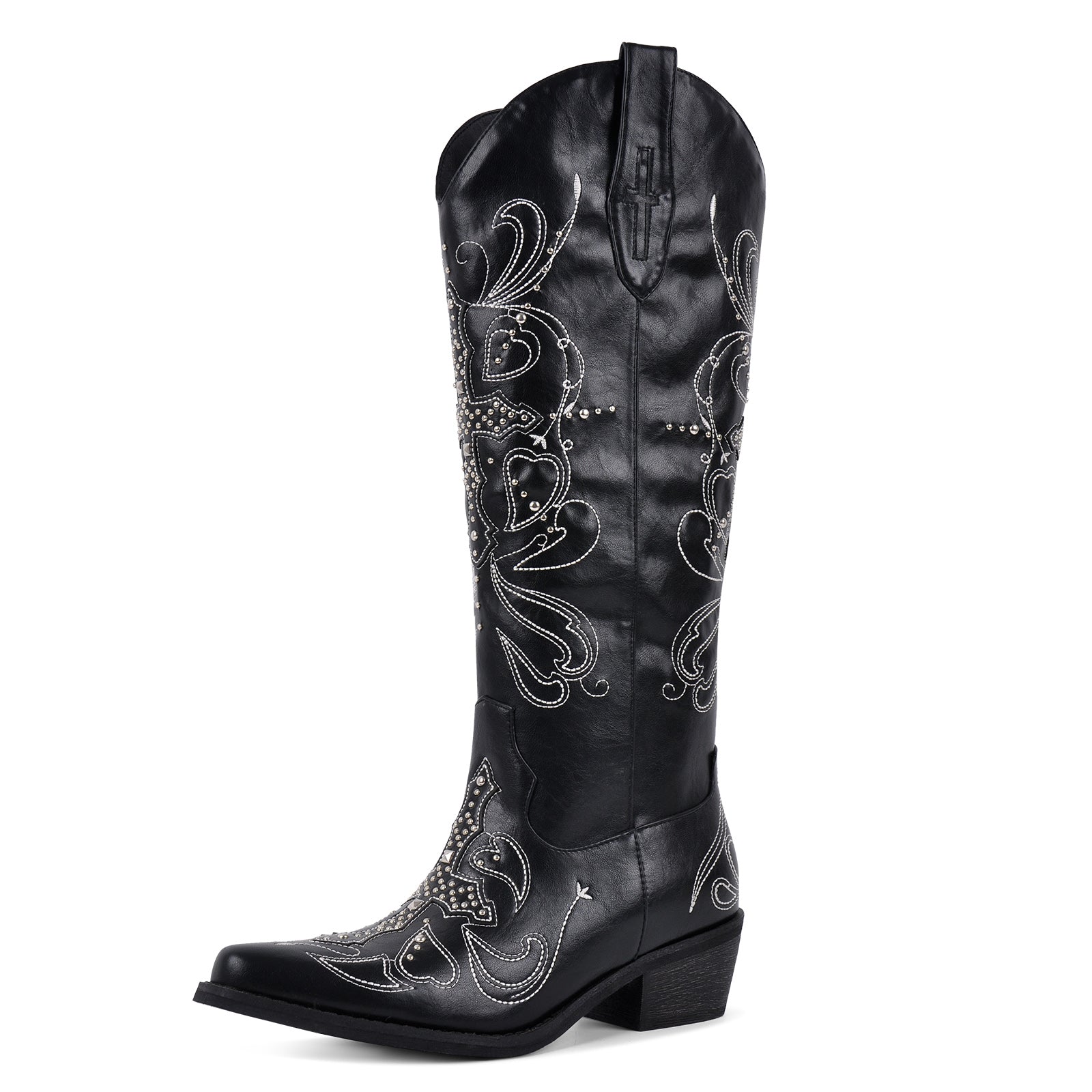 Embroidery Rivet Knee High Western Boots