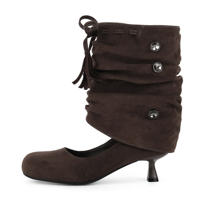 Rhinestone Round Toe Pleated Fold Over Mid-Calf Boots