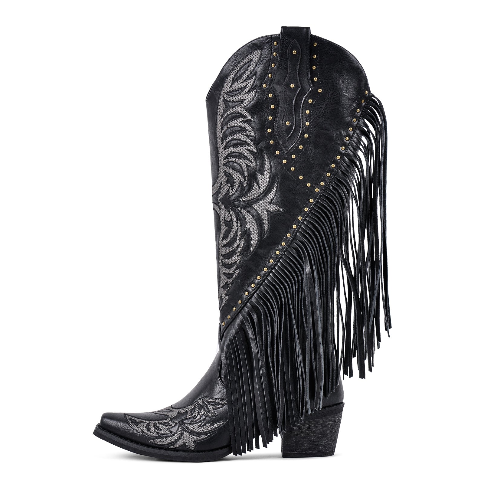 Fringe Rivet Knee High Western Boots$99.99 USD$109.99 USD