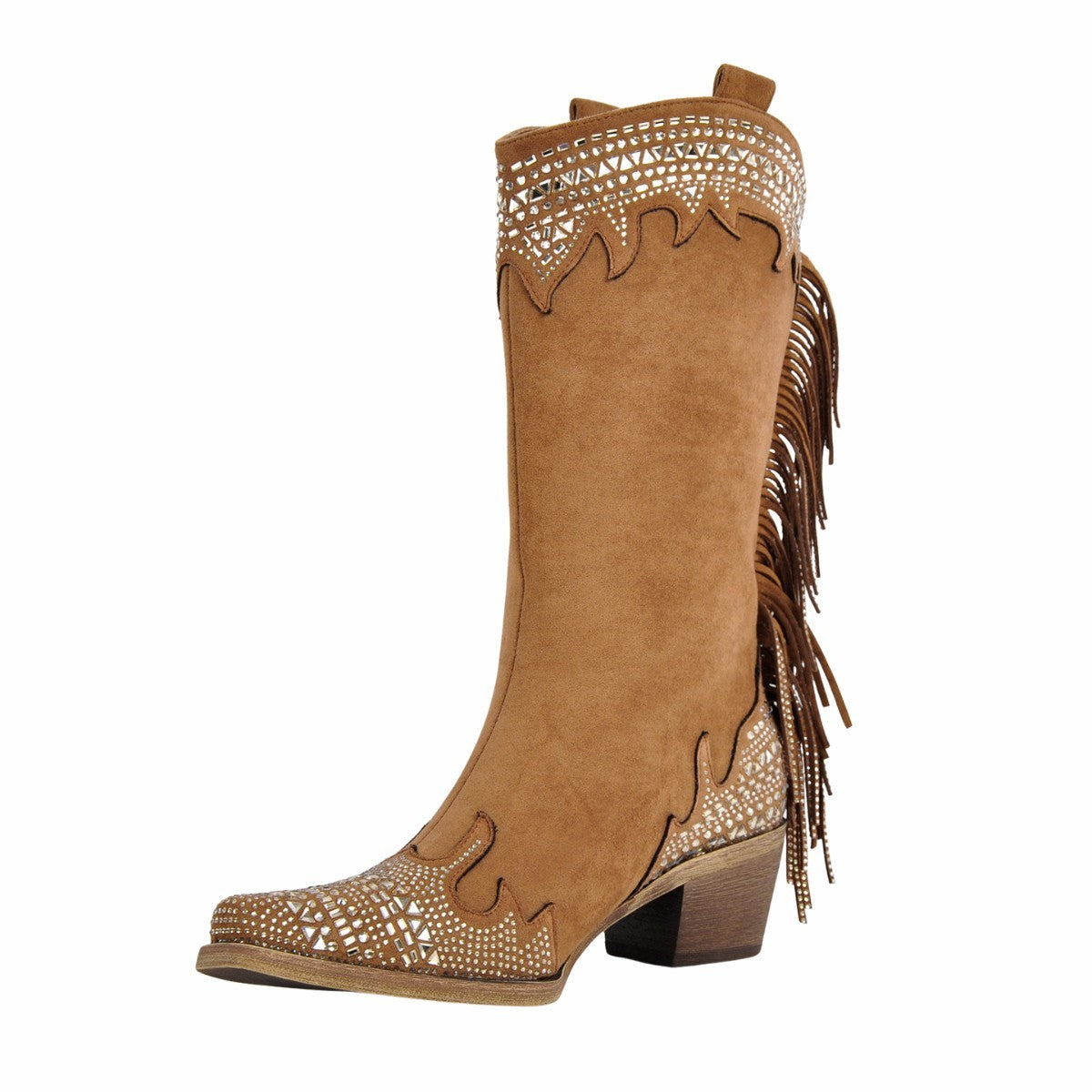 Rhinestone Fringe Suede Mid-Calf Western Boots$89.99 USD$99.99 USD