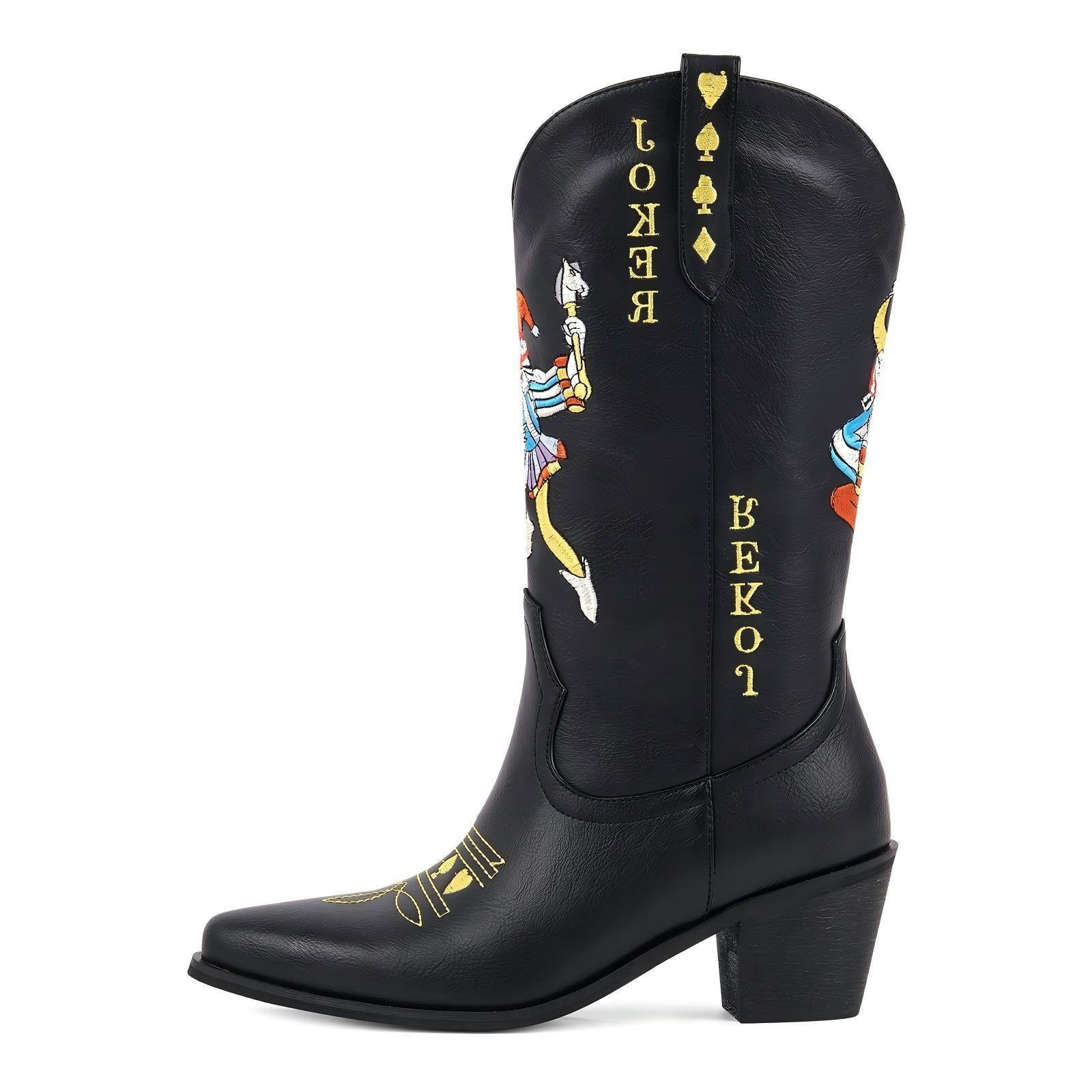 Embroidery Chunky Heel Mid-Calf Western Boots$79.99 USD$99.99 USD