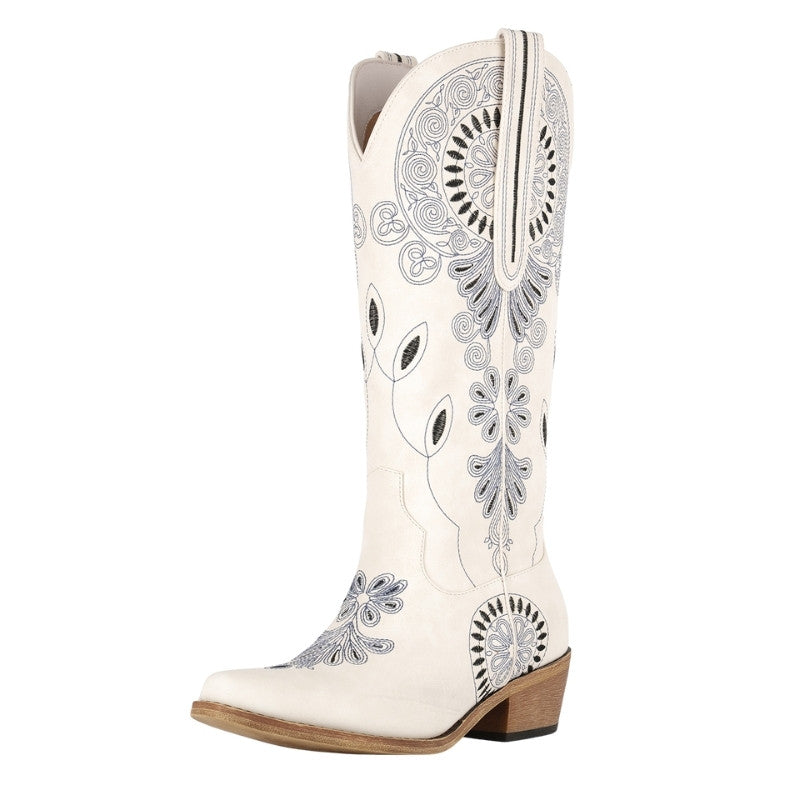 Embroidery Chunky Heel Mid-Calf Western Boots$89.99 USD$99.99 USD
