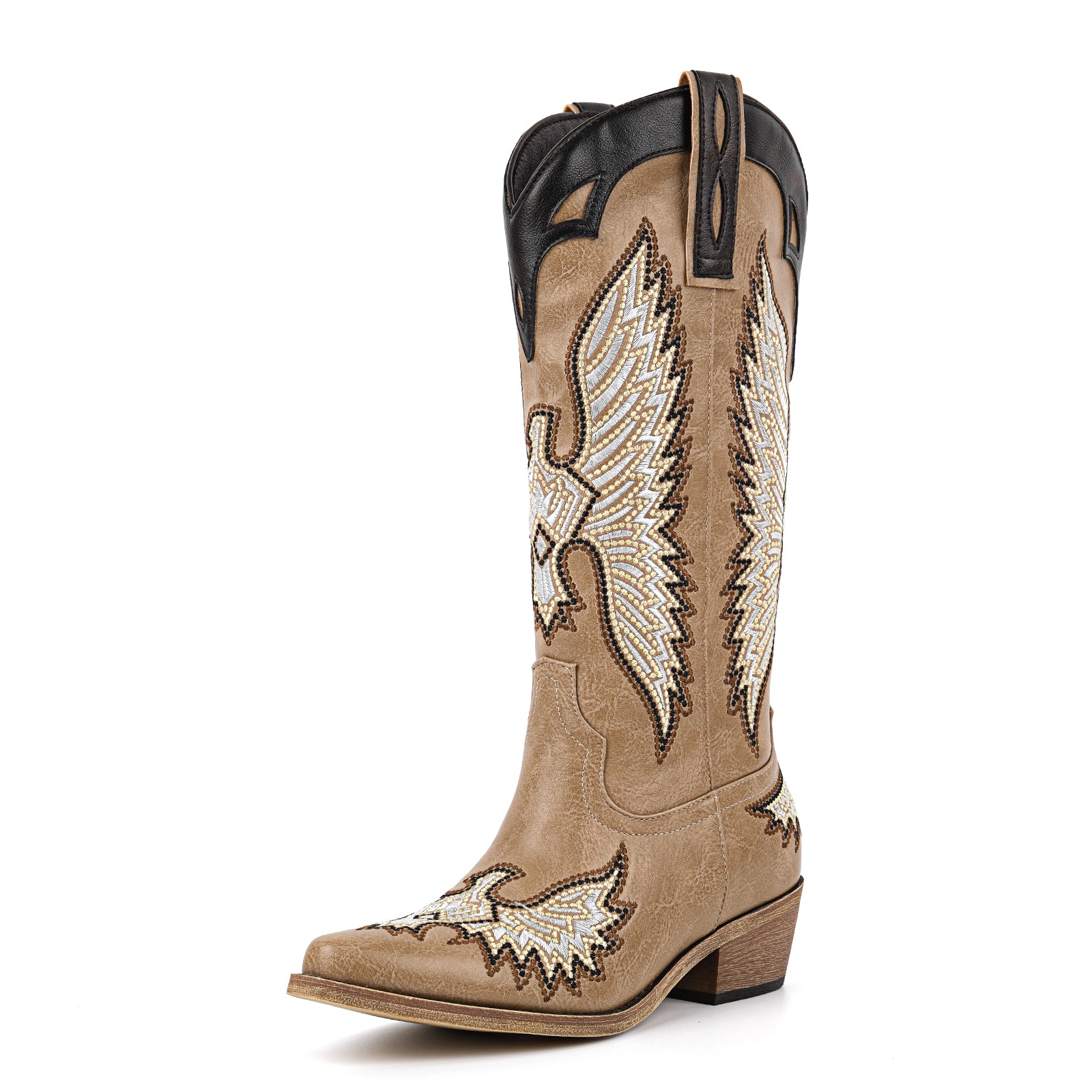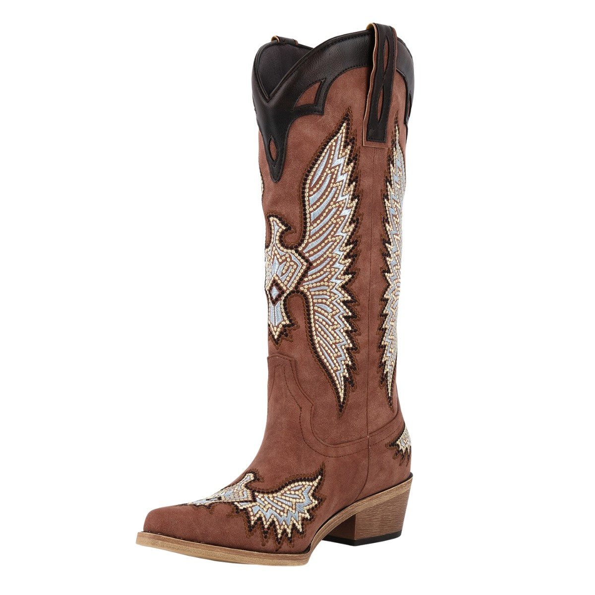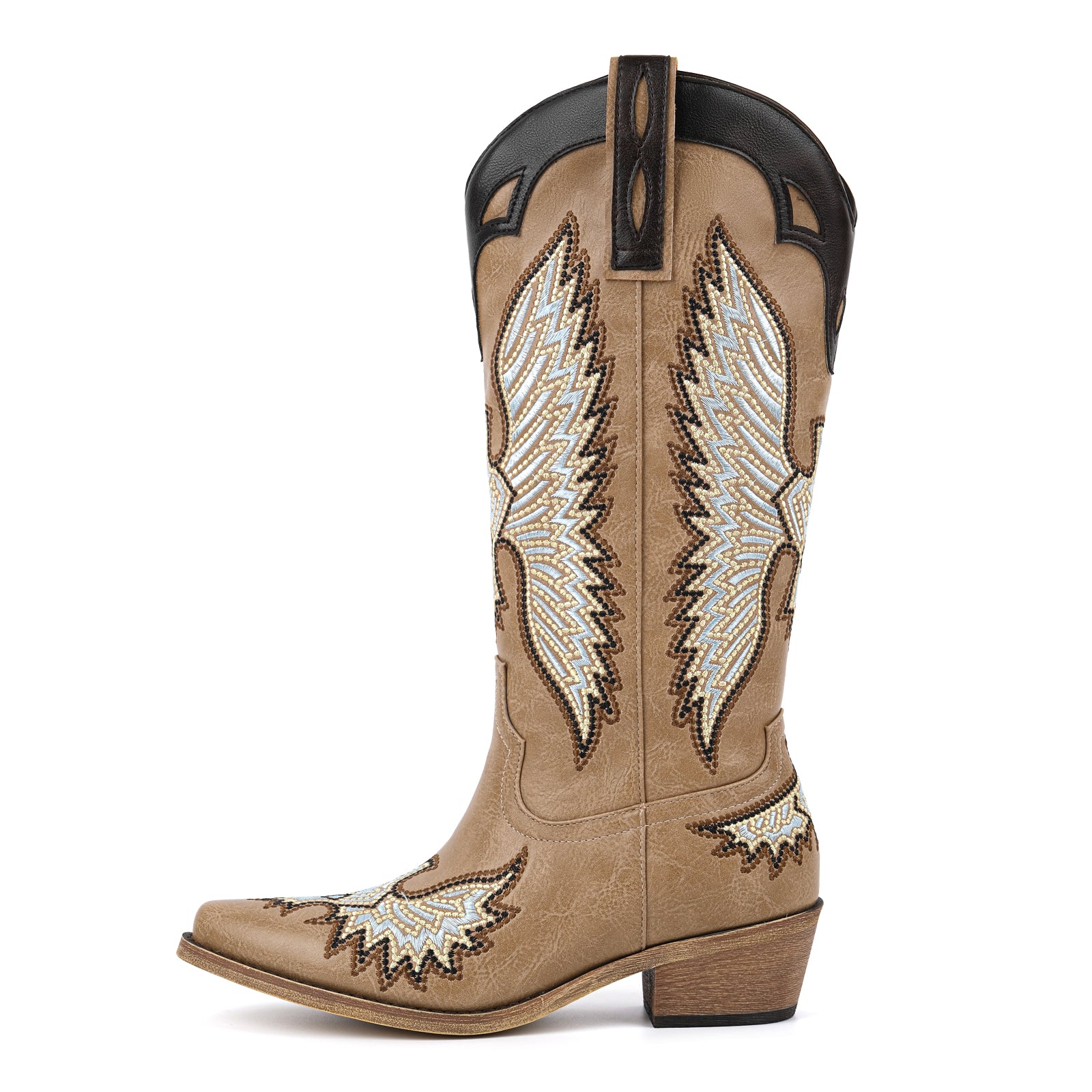 Pointed Toe Embroidery Knee High Western Boots