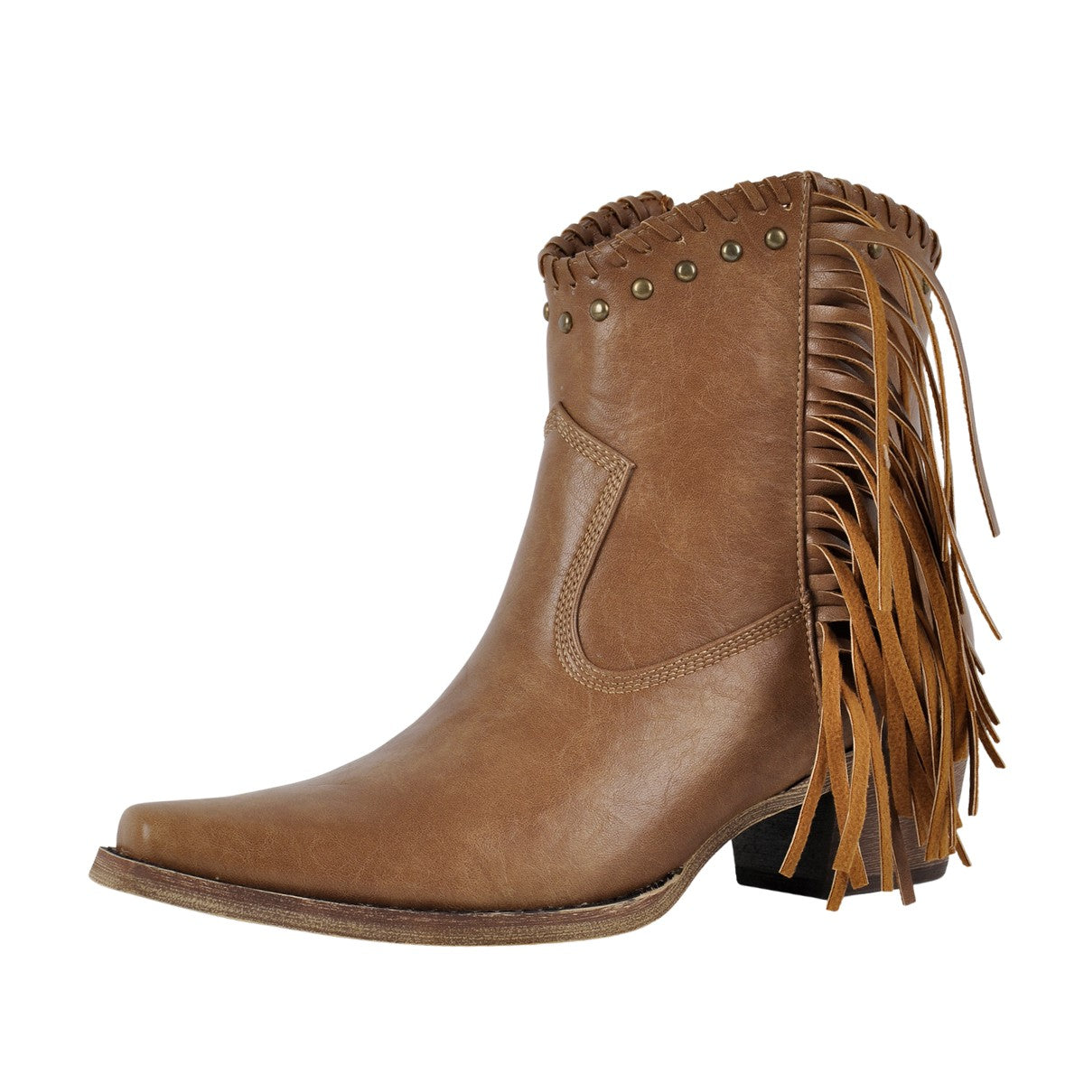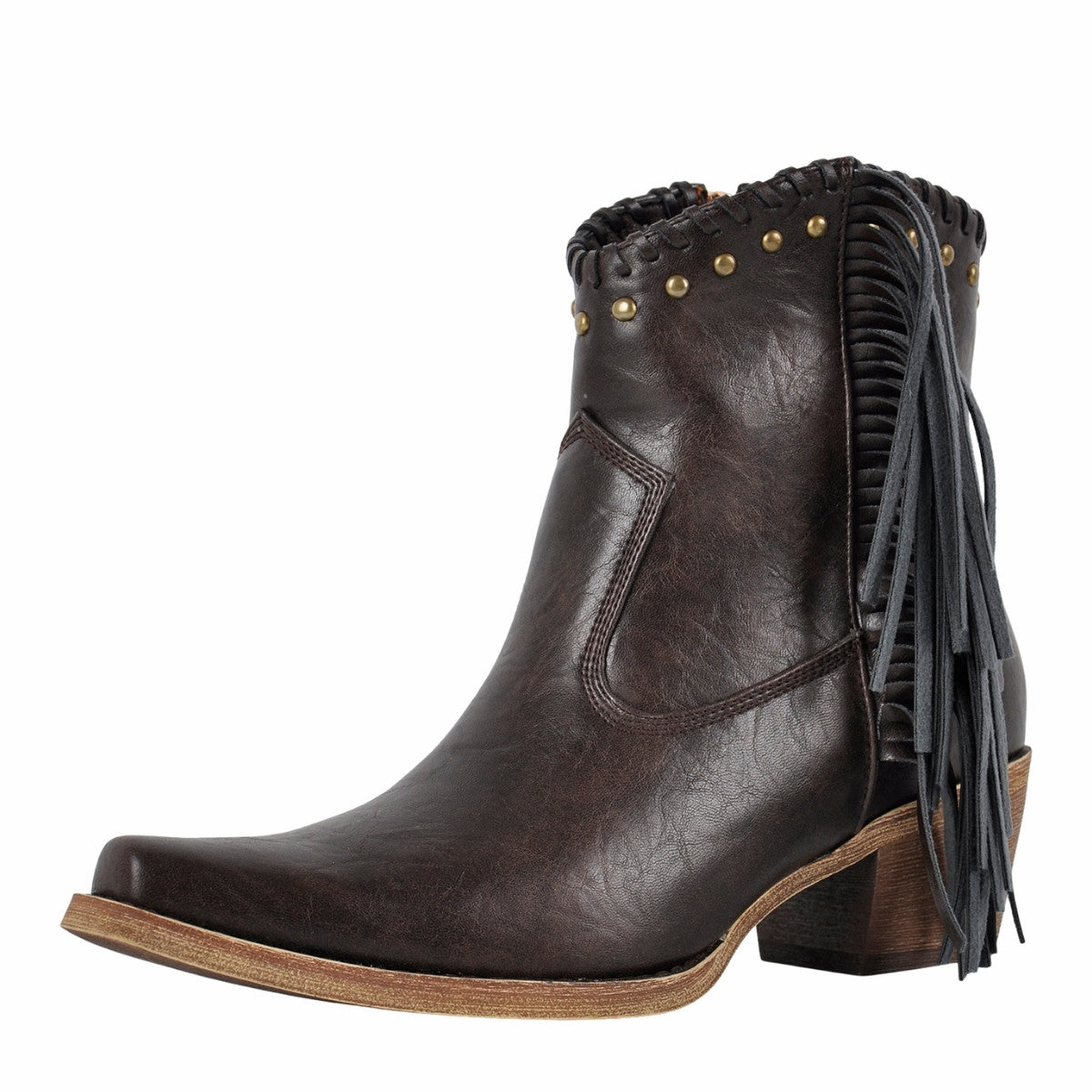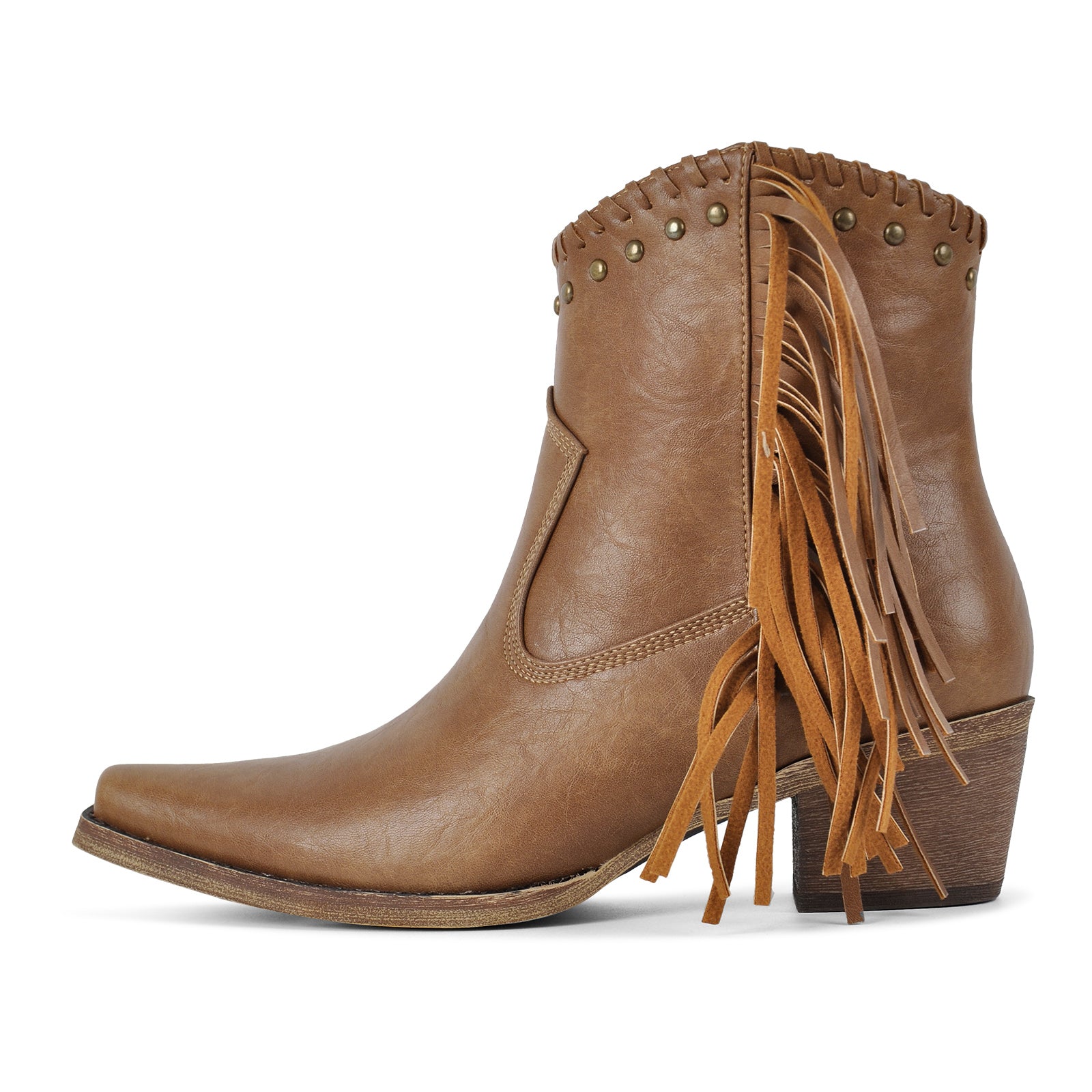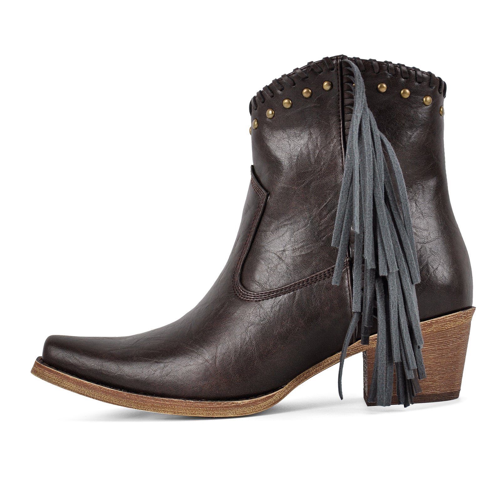 Fringe Rivet Chunky Heel Ankle Western Boots