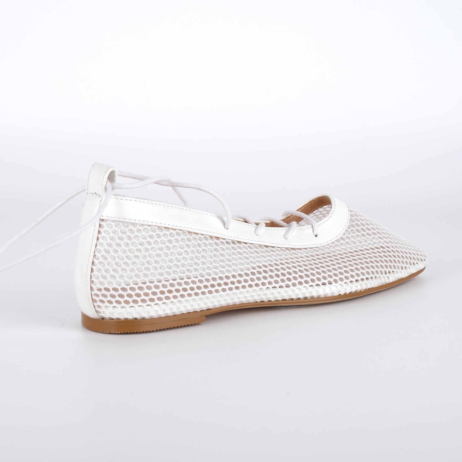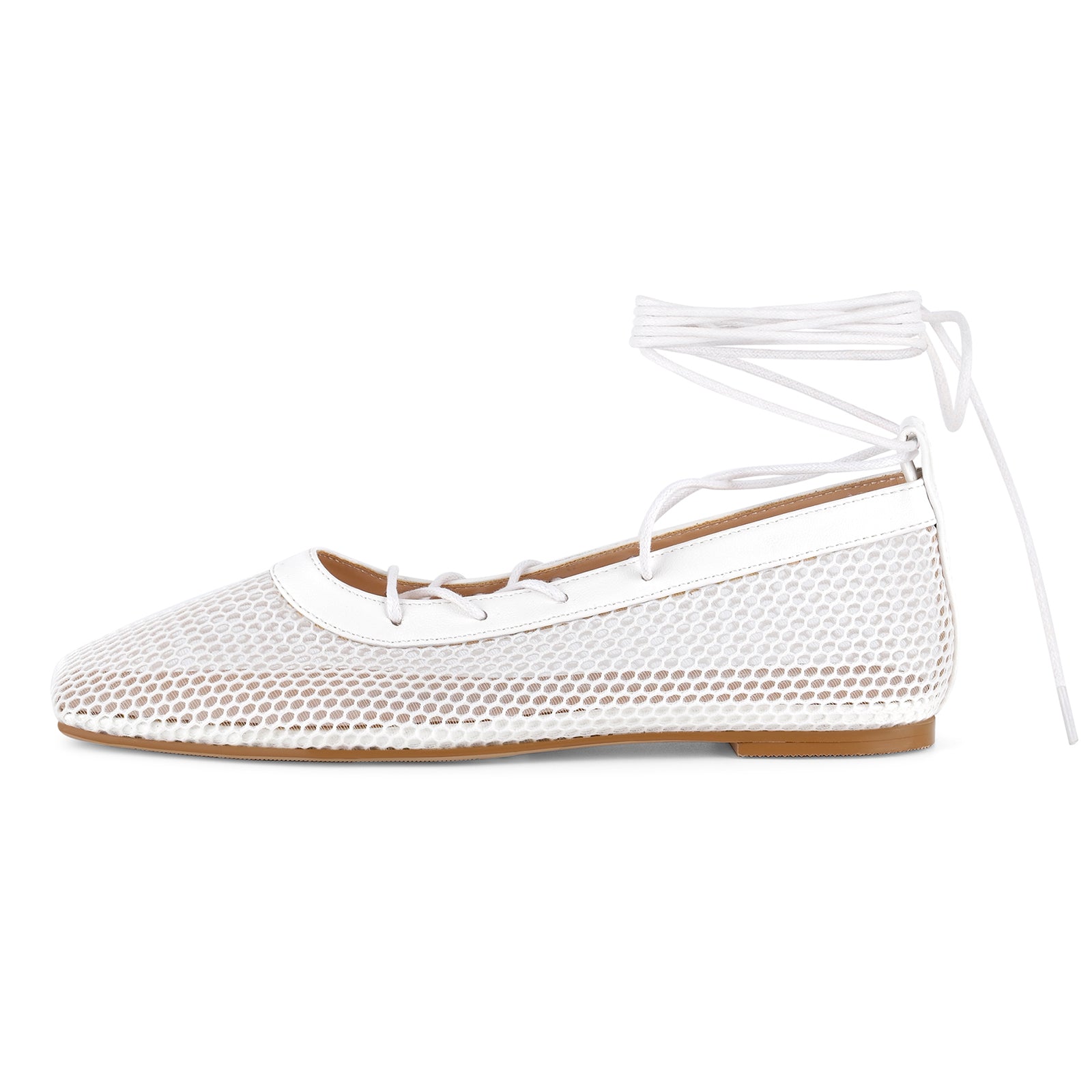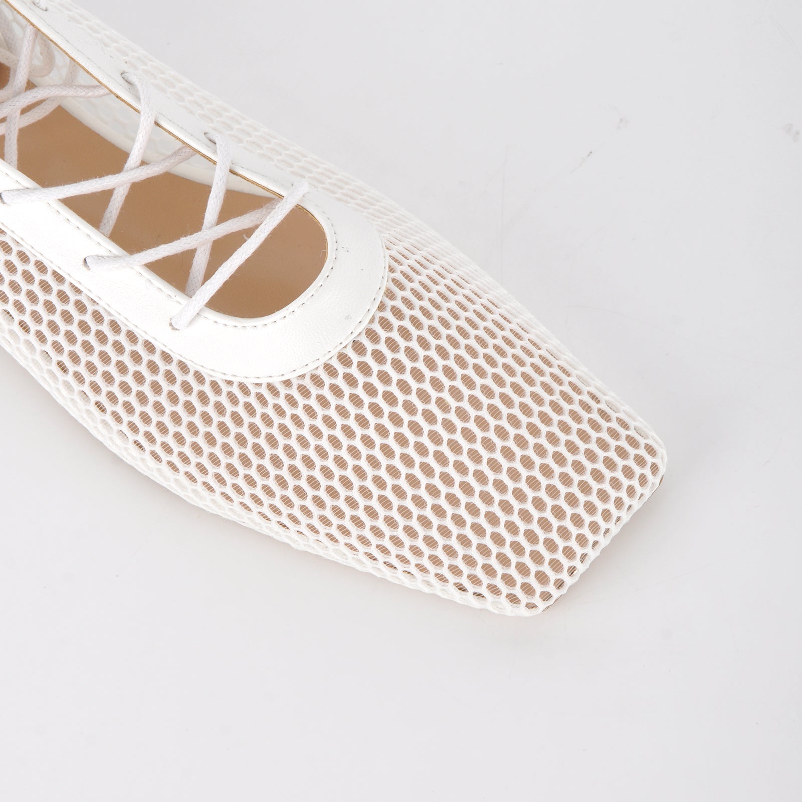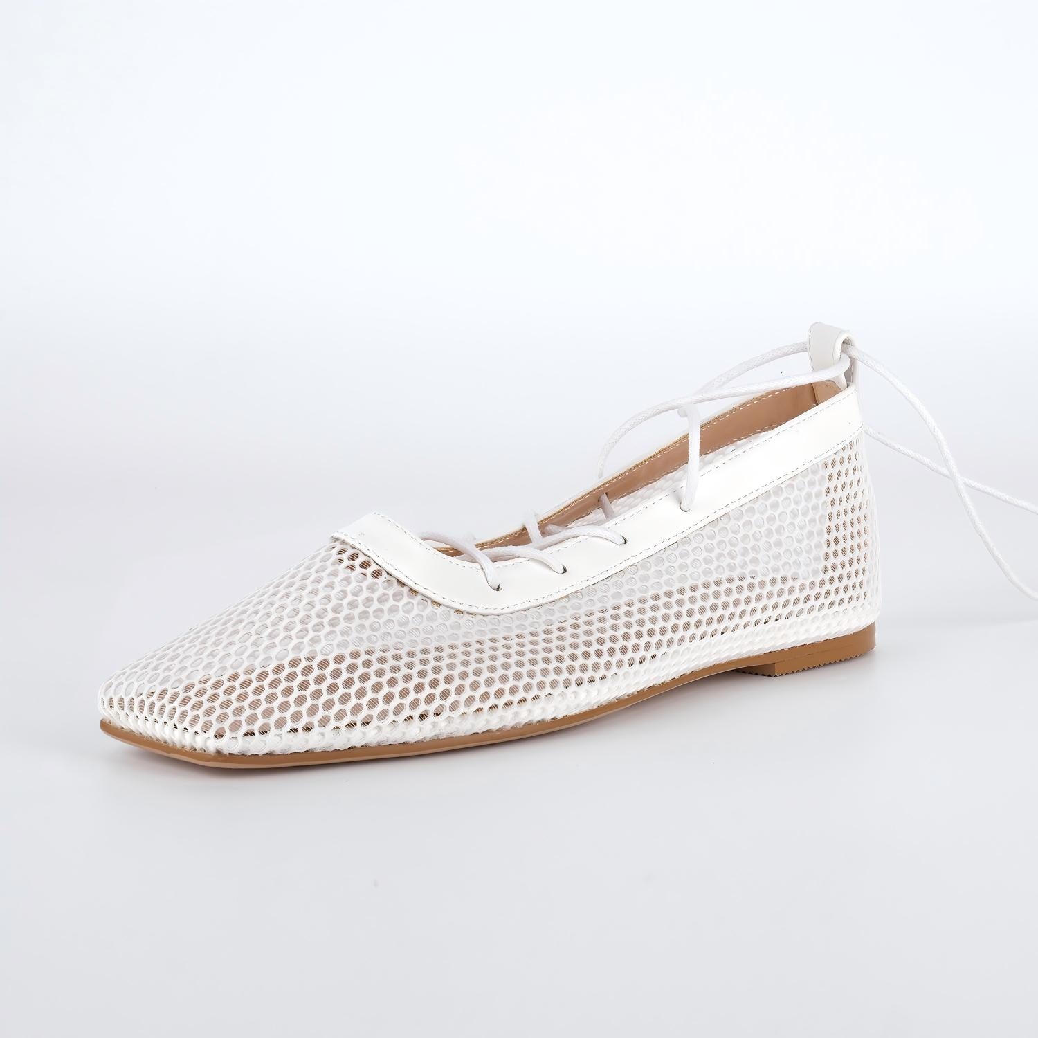 Square Toe Mesh Lace-up Ballet Flats
