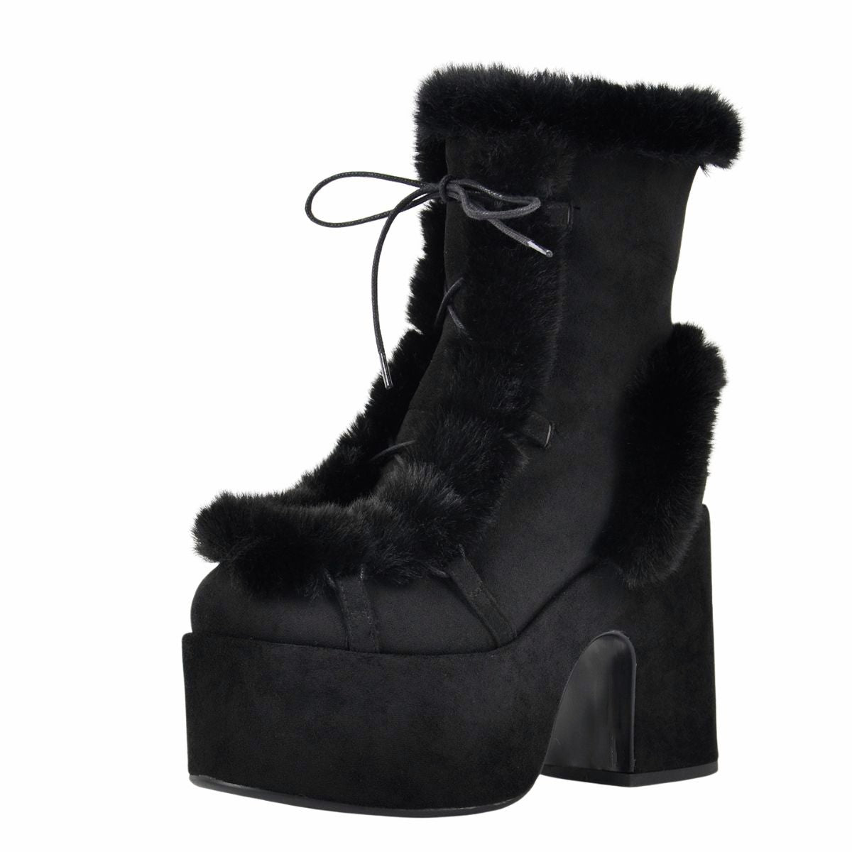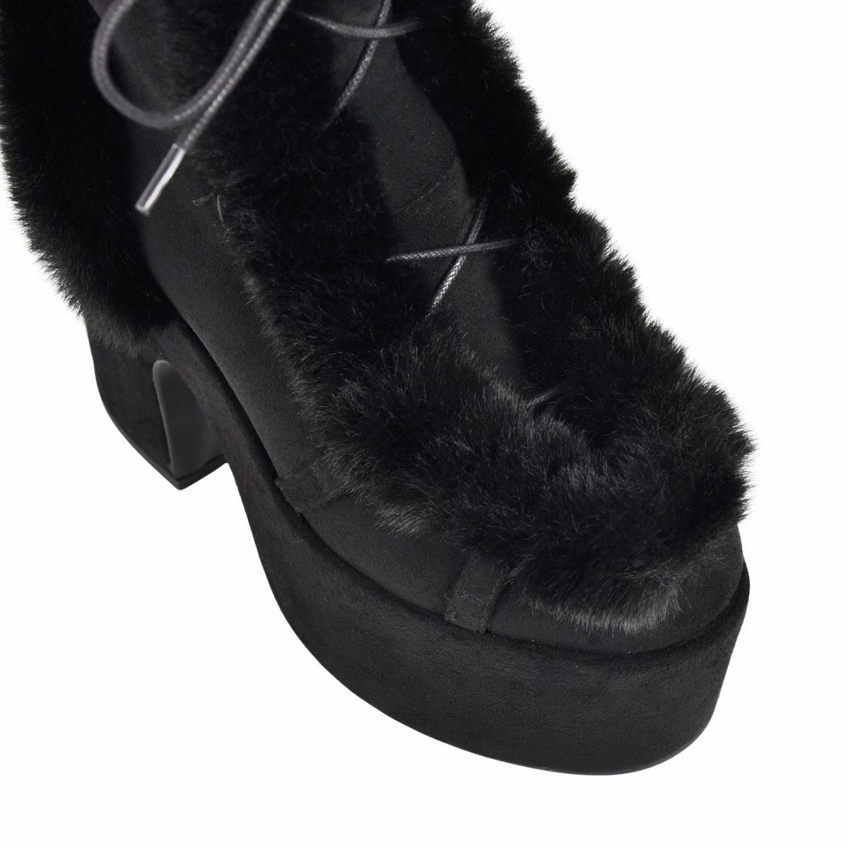 Platform Fur Lace-up Suede Ankle Boots