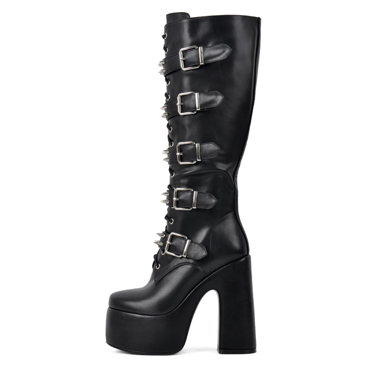 Platform Rivet Buckle Strap Knee High Boots$99.99 USD$109.99 USD