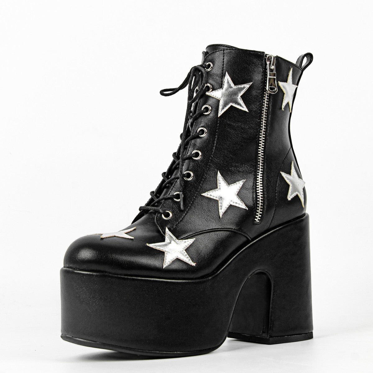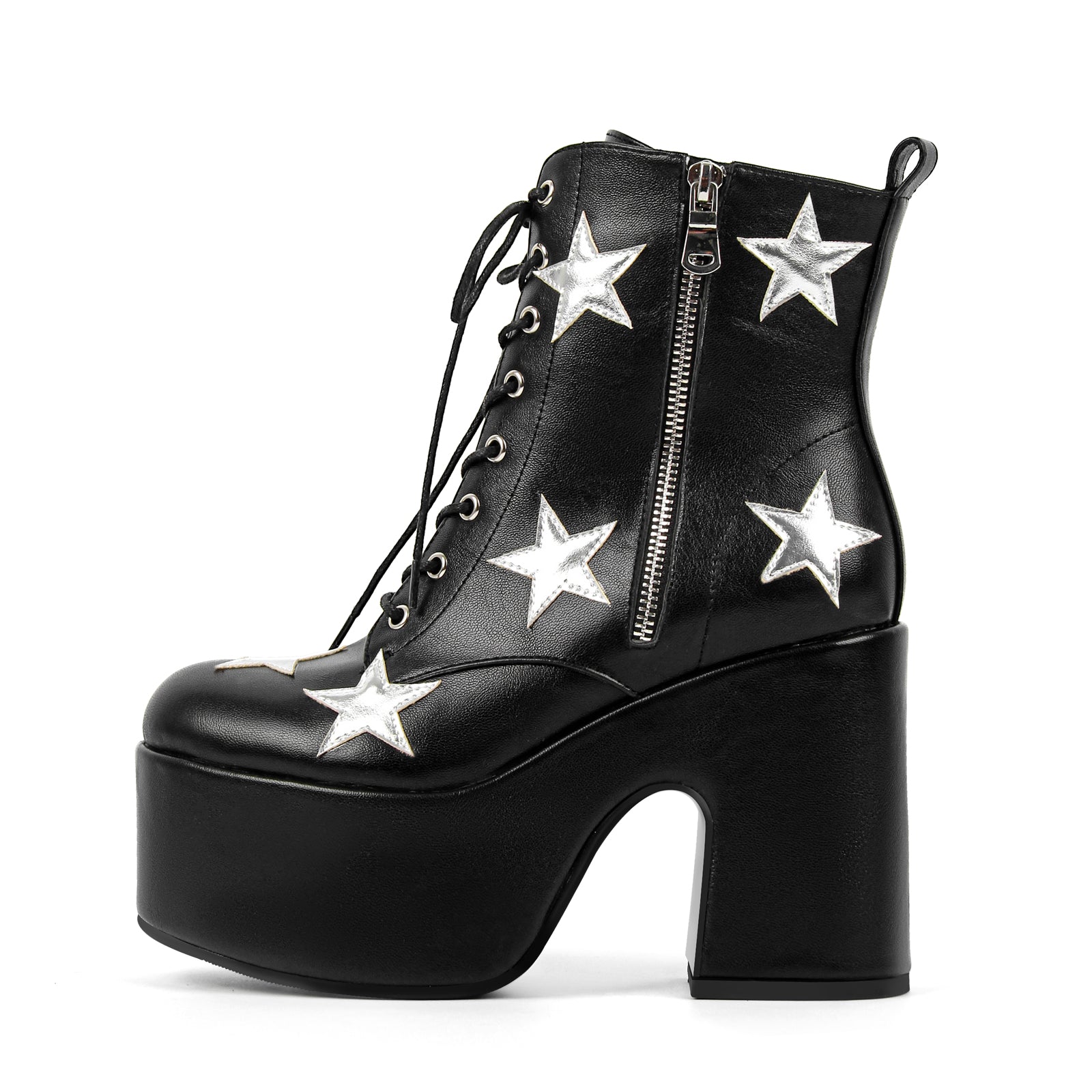 Star Platform Lace-up Zipper Ankle Boots$79.99 USD$99.99 USD