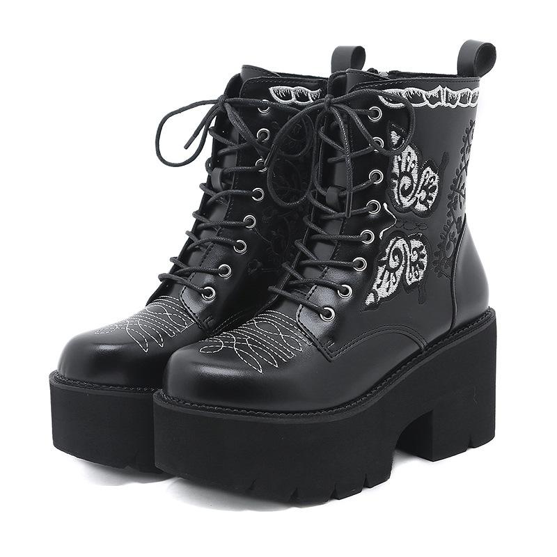 Platform Embroidery Lace-up Ankle Boots$74.99 USD$99.99 USD