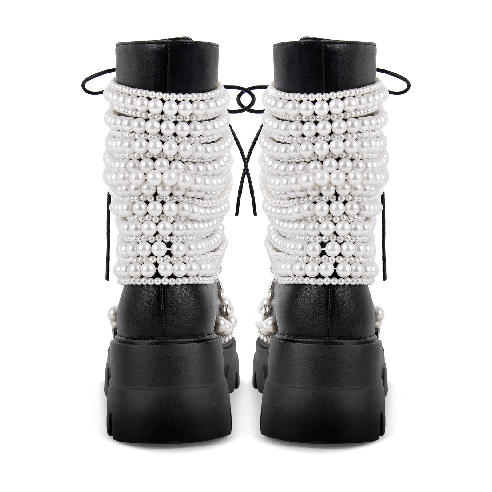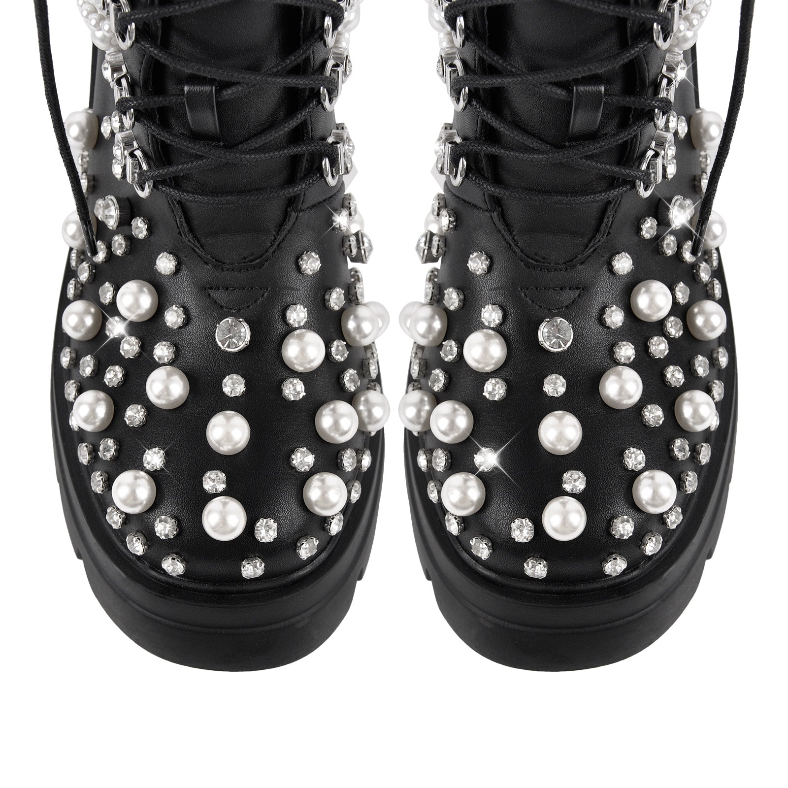 Pearl Rhinestone Embellished Platform Ankle Boots