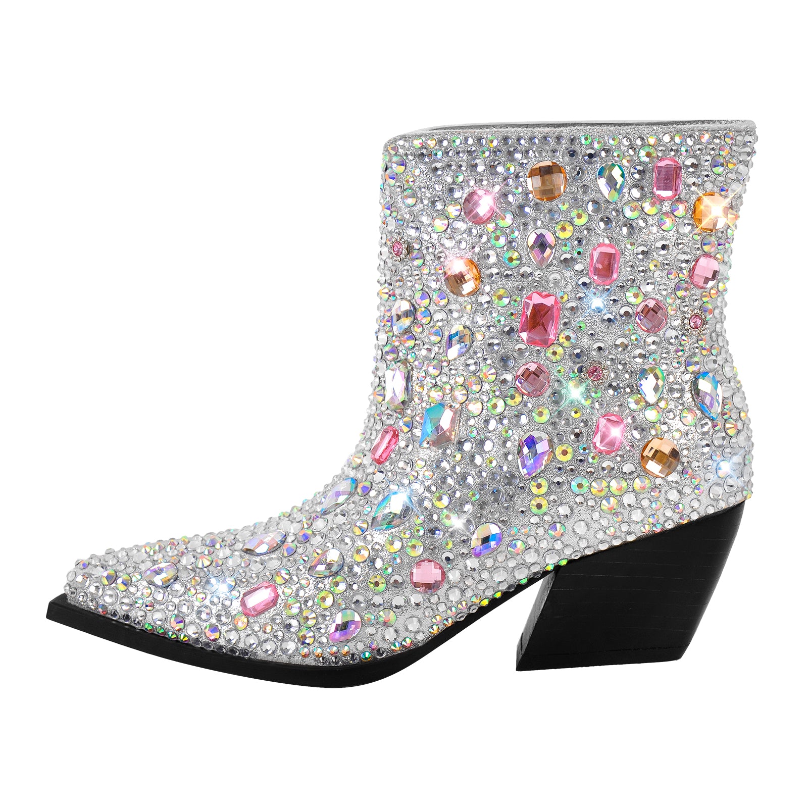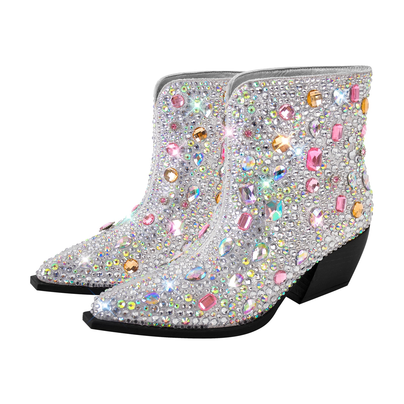 Multicolor Rhinestone Jewel Western Ankle Boots$79.99 USD$99.99 USD