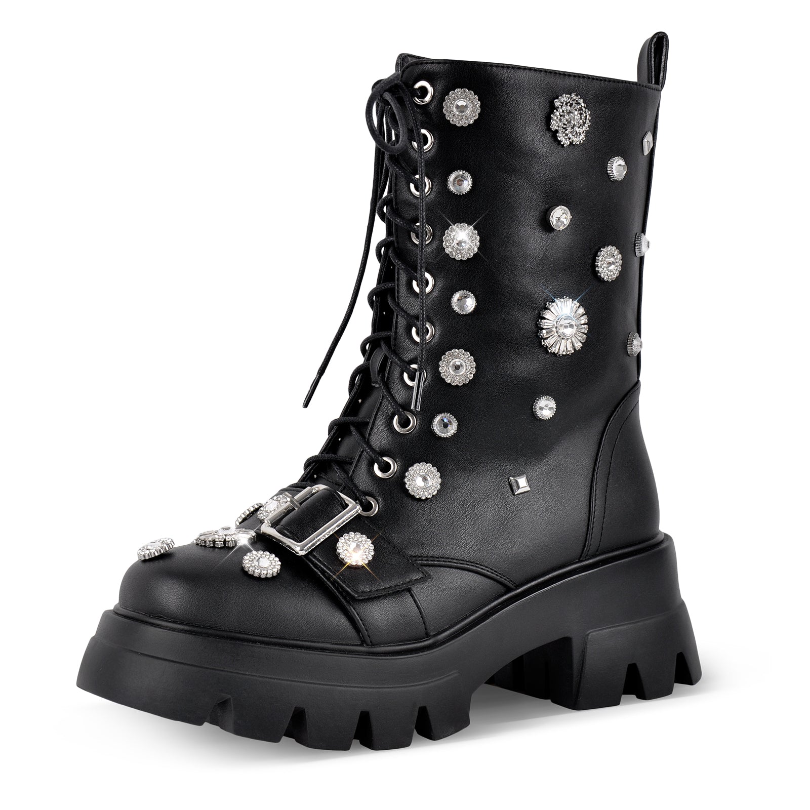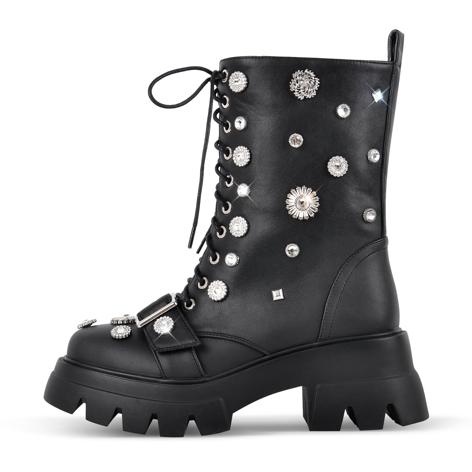 Chunky Heel Lace-up Rhinestone Platform Boots$69.99 USD$99.99 USD