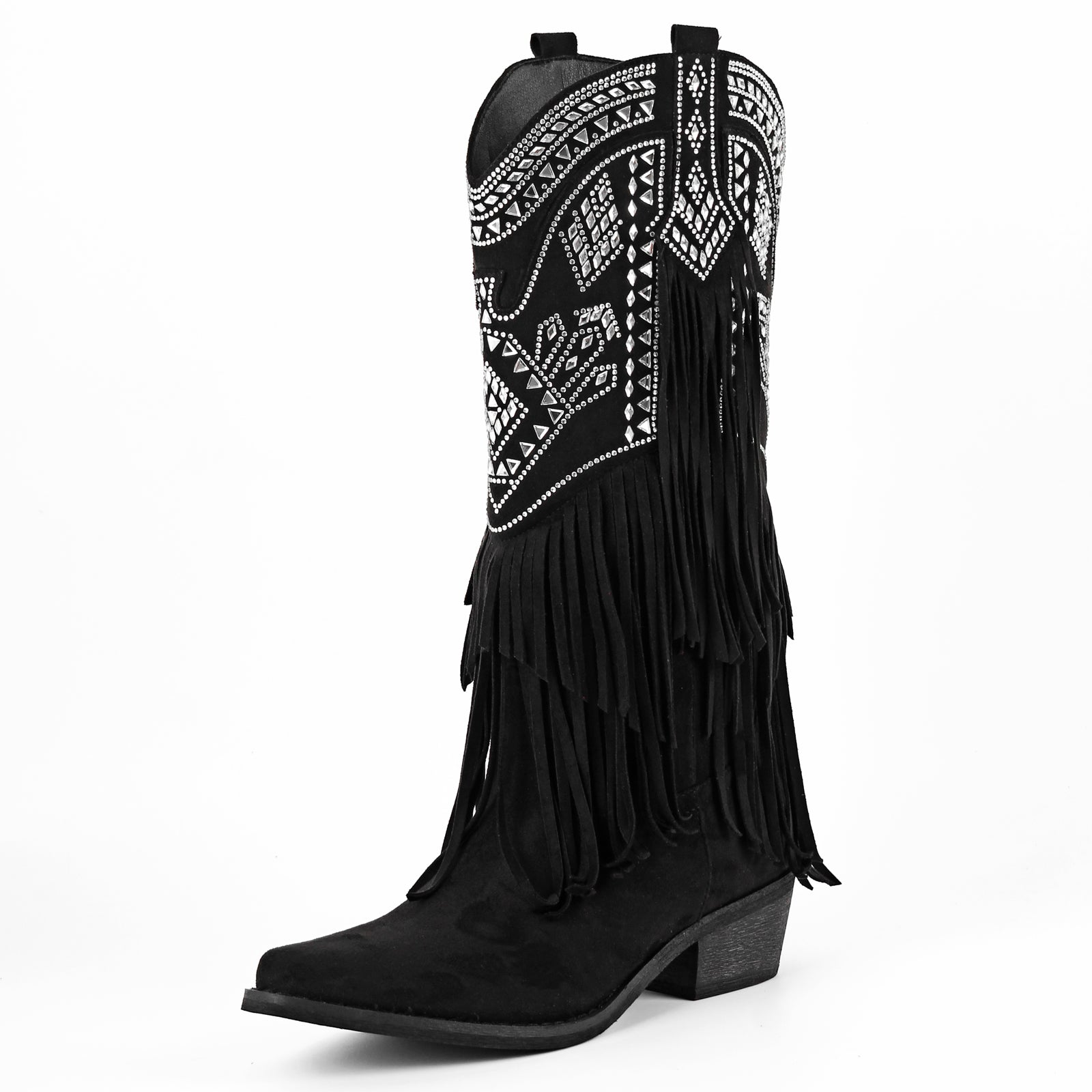 Suede Rhinestone Fringe Knee High Western Boots$99.99 USD$109.99 USD