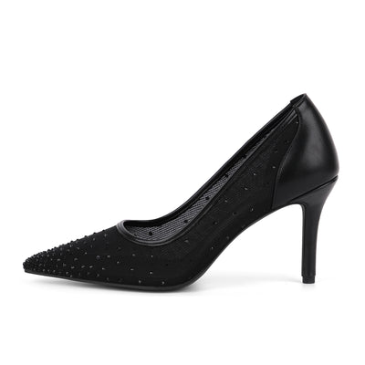 Mesh Rhinestone Square Toe Lace-up High Heels