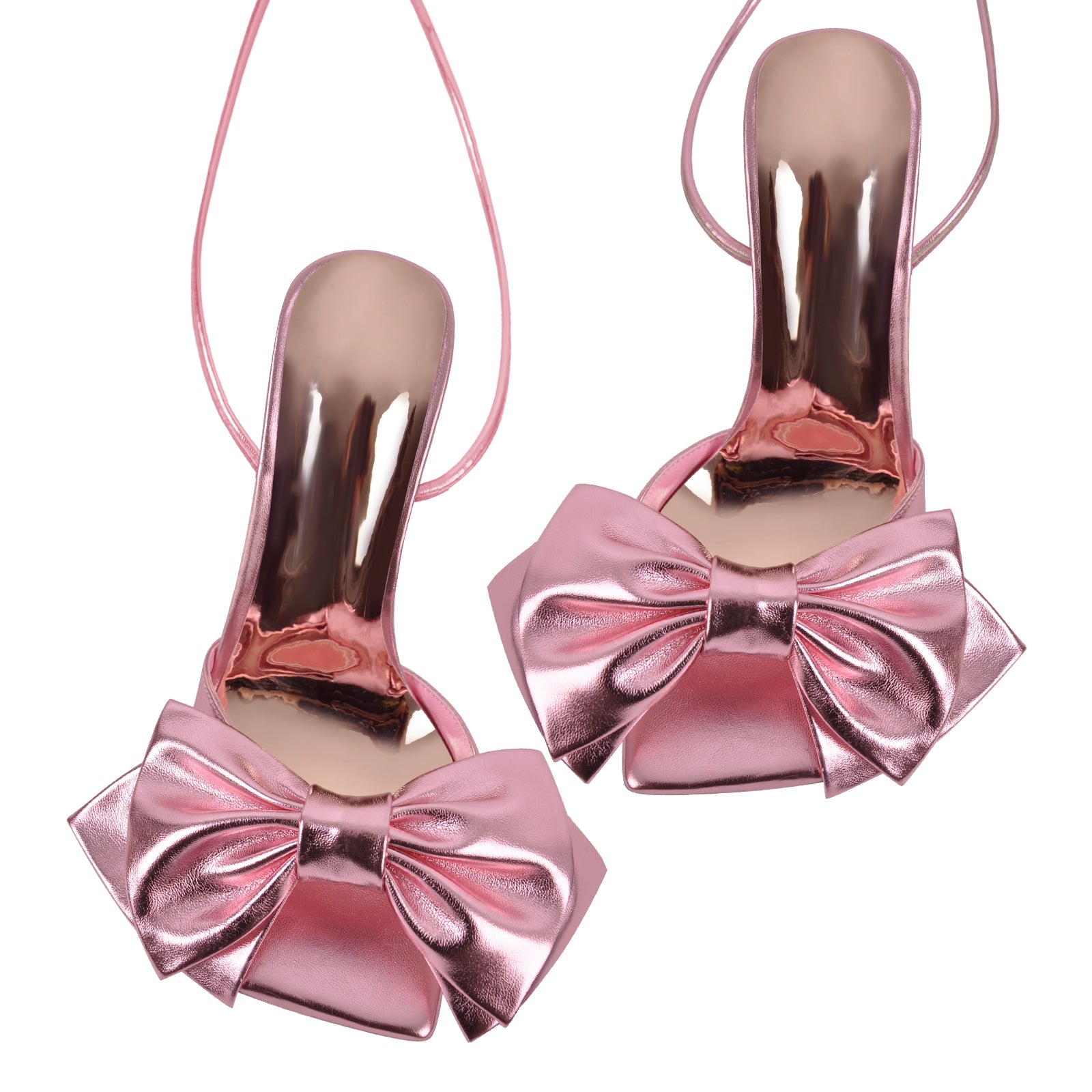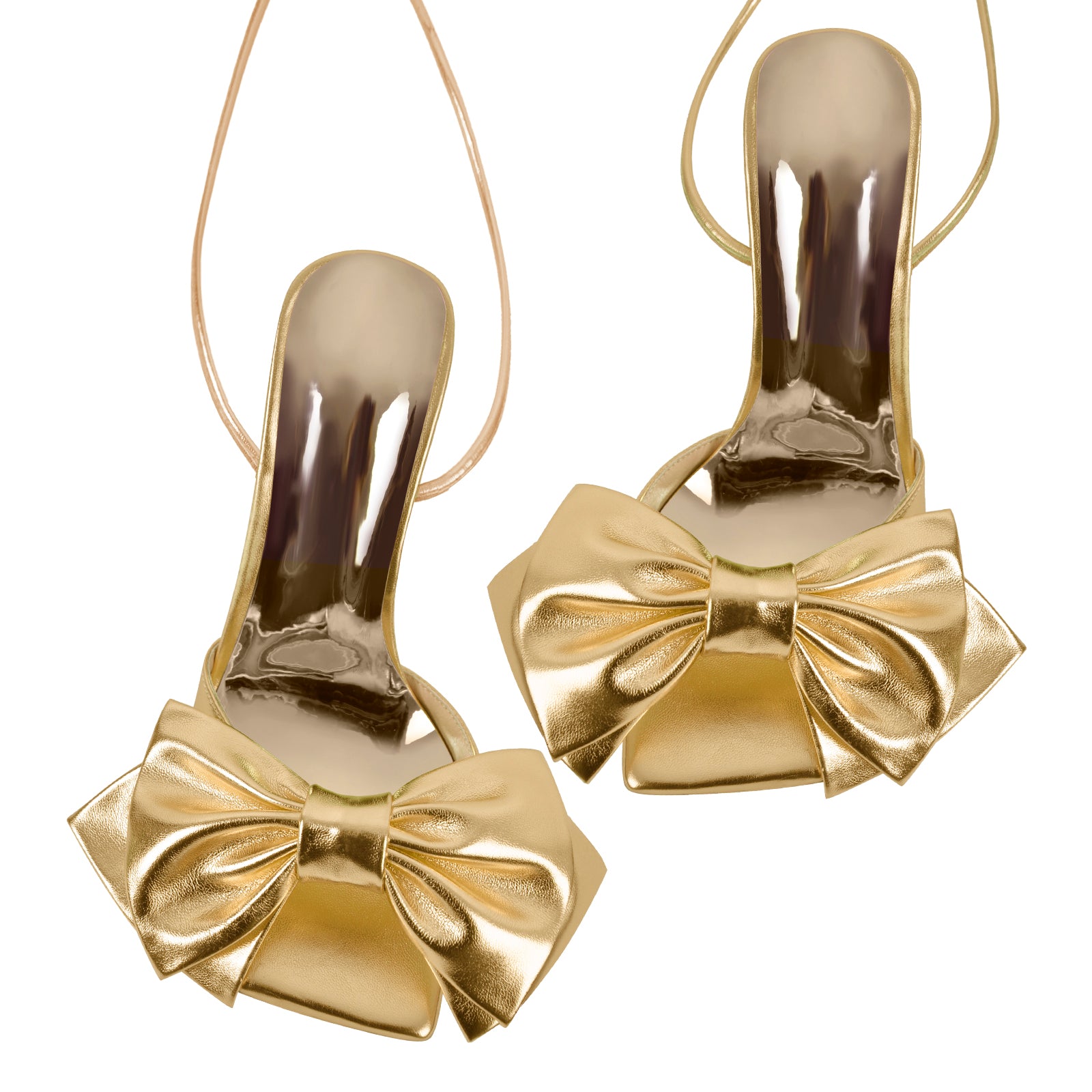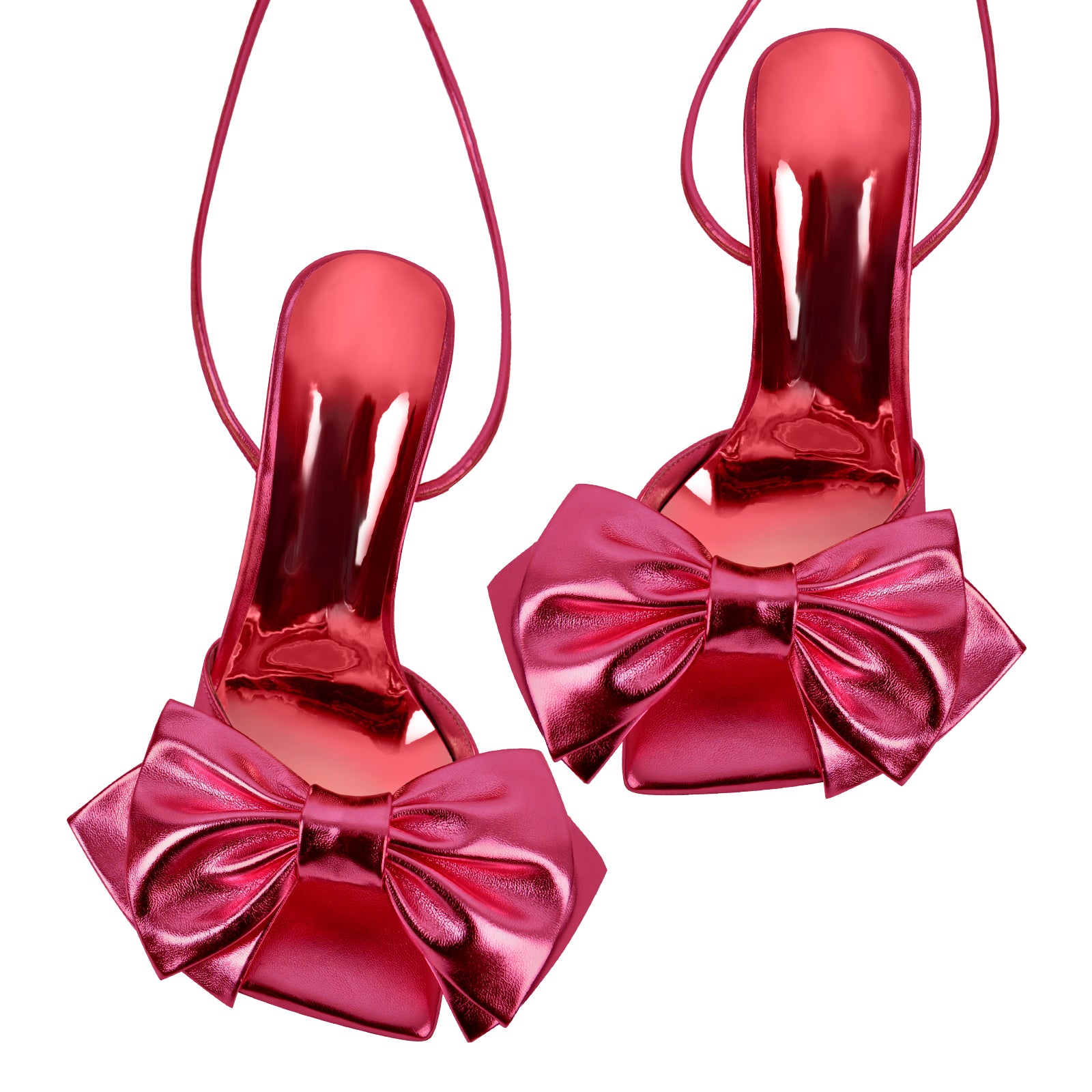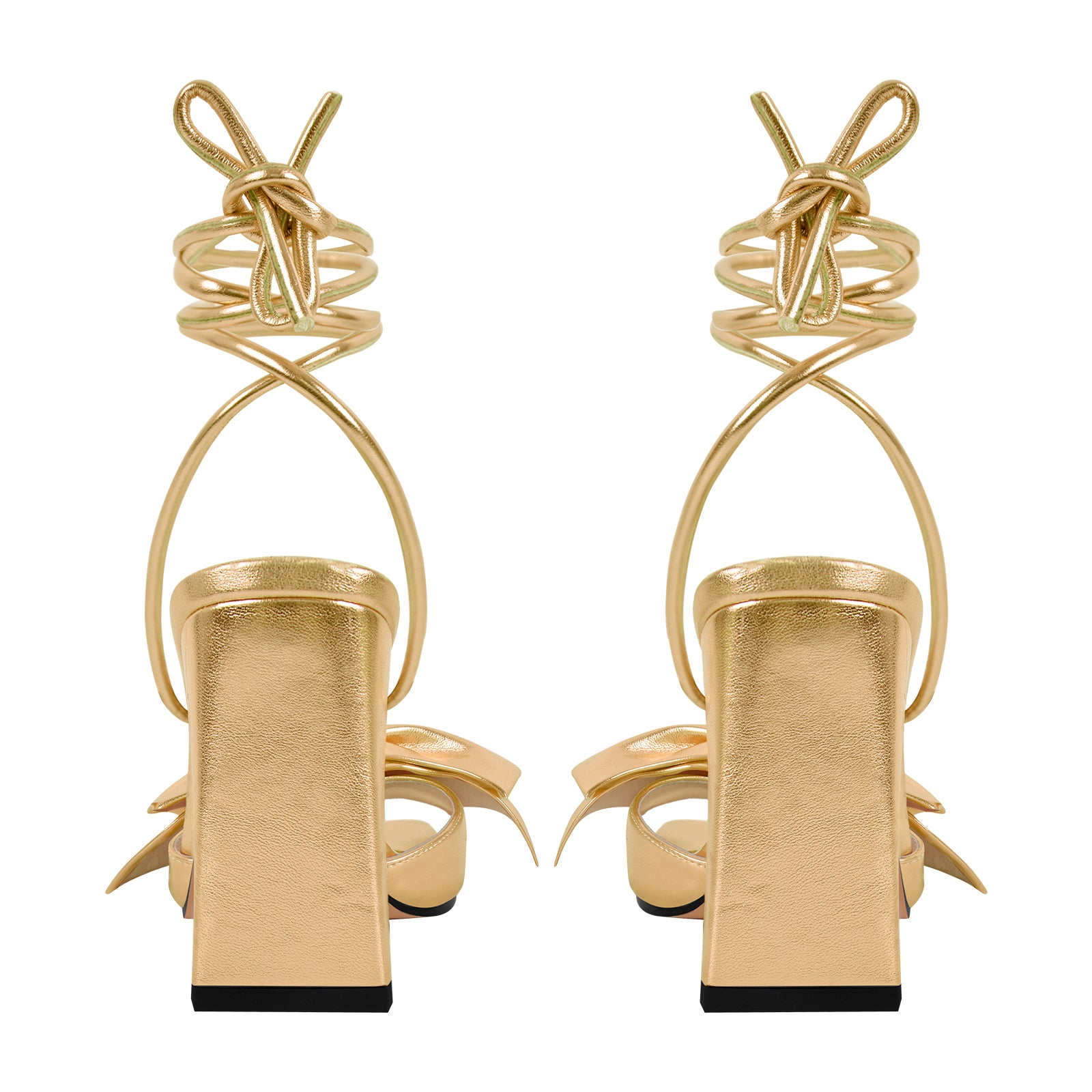 Bow Lace Up Square Toe Chunky Heel Sandals