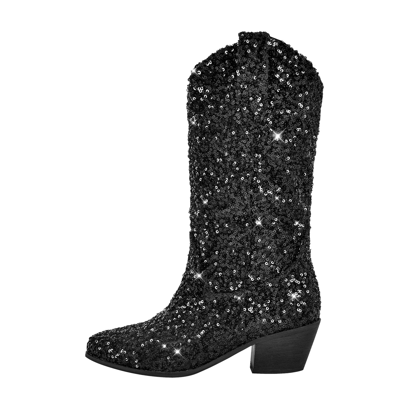 Black Sparkle Sequins Mid-Calf Boots$59.99 USD$99.99 USD