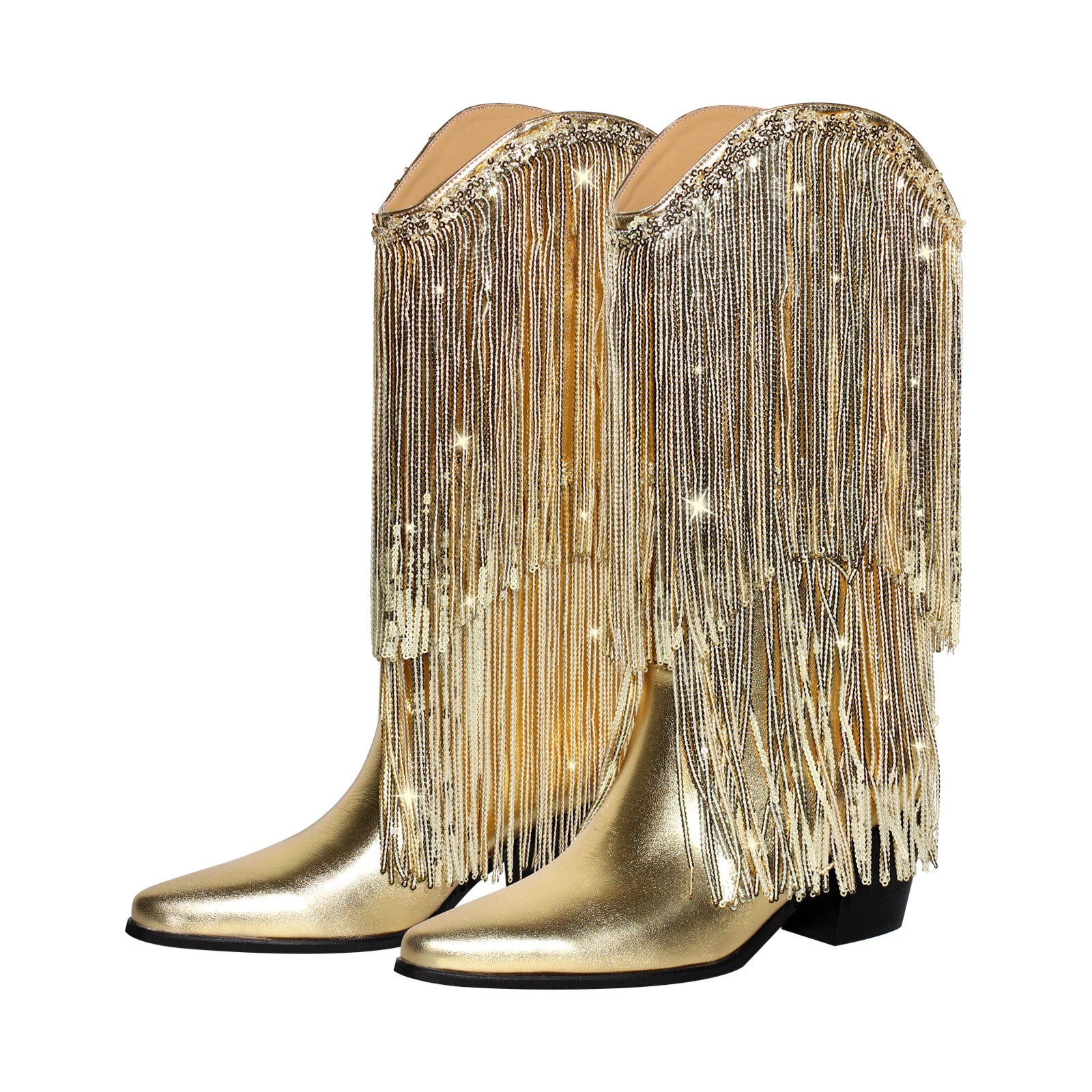 Rhinestone Fringe Knee High Western Boots$84.99 USD$99.99 USD