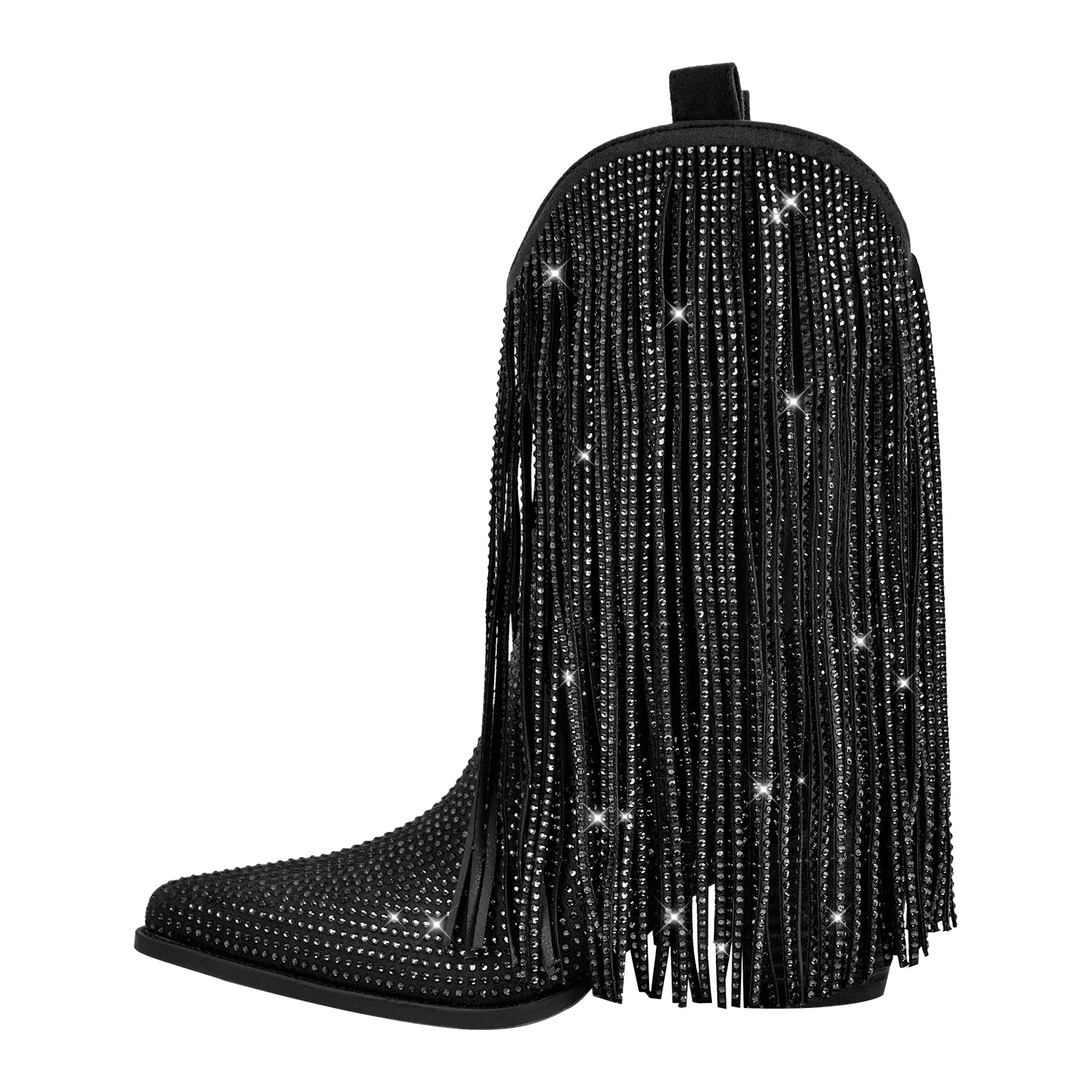 Rhinestone Pointed Toe Fringe Mid-Calf Western Boots$74.99 USD$99.99 USD