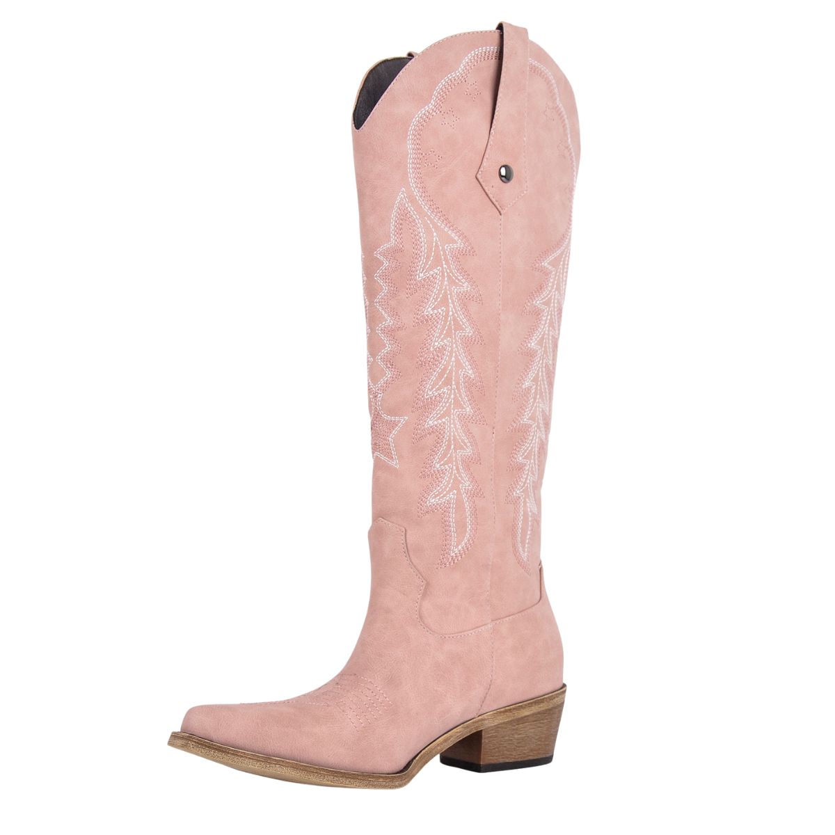 • White Pointed Toe Pink Bow Knee High Cowgirl Boots White Pointed Toe Pink Bow Knee High Cowgirl Boots