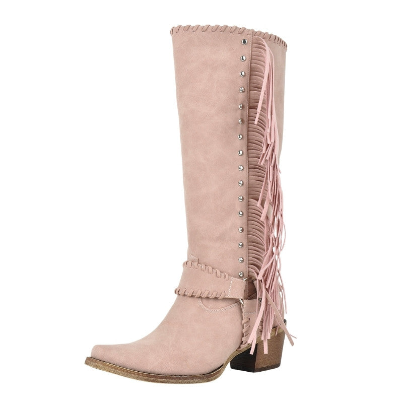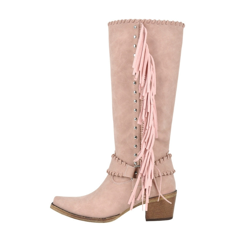• Embroidery Fringe Knee High Western Boots Embroidery Fringe Knee High Western Boots