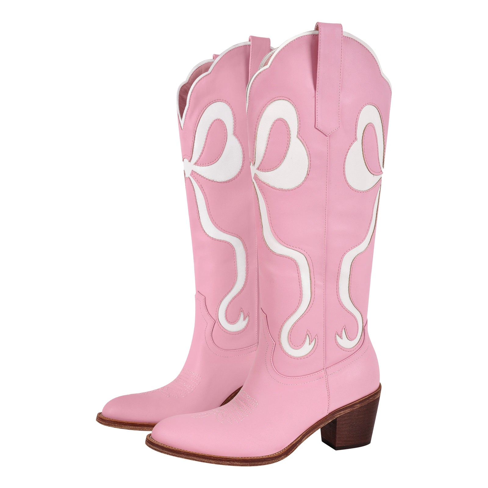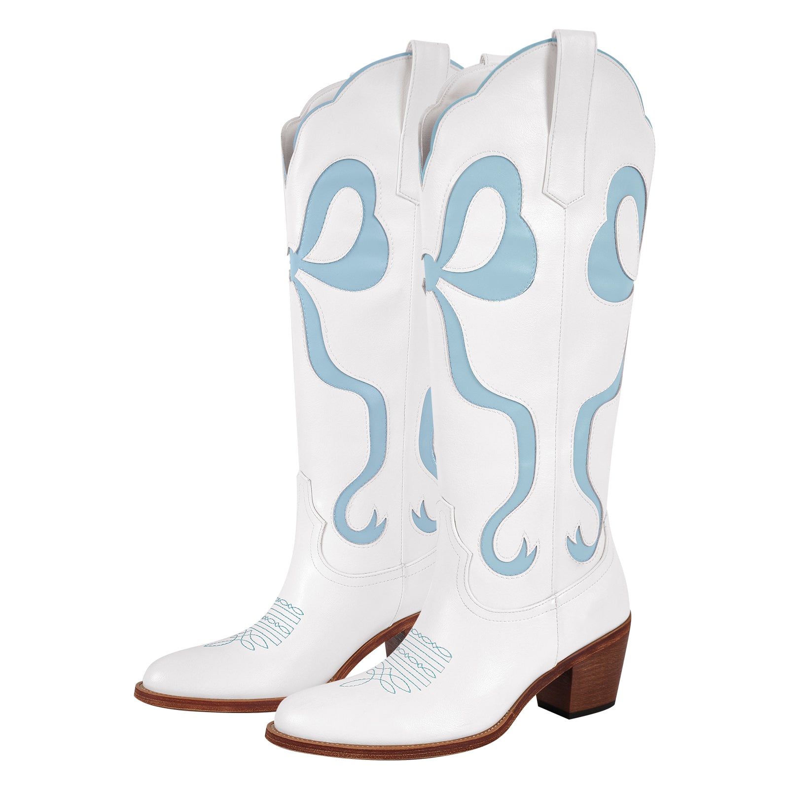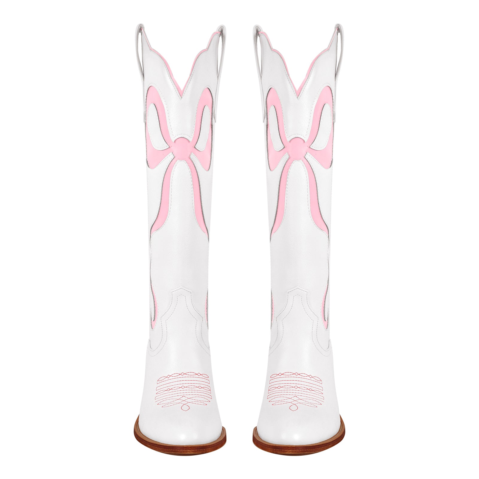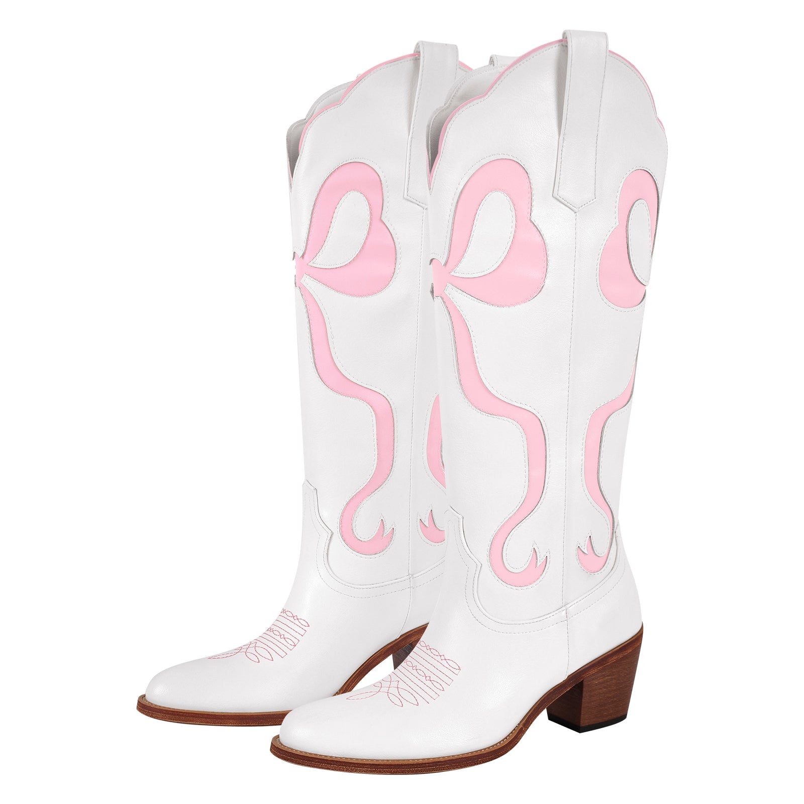 White Pointed Toe Pink Bow Knee High Cowgirl Boots