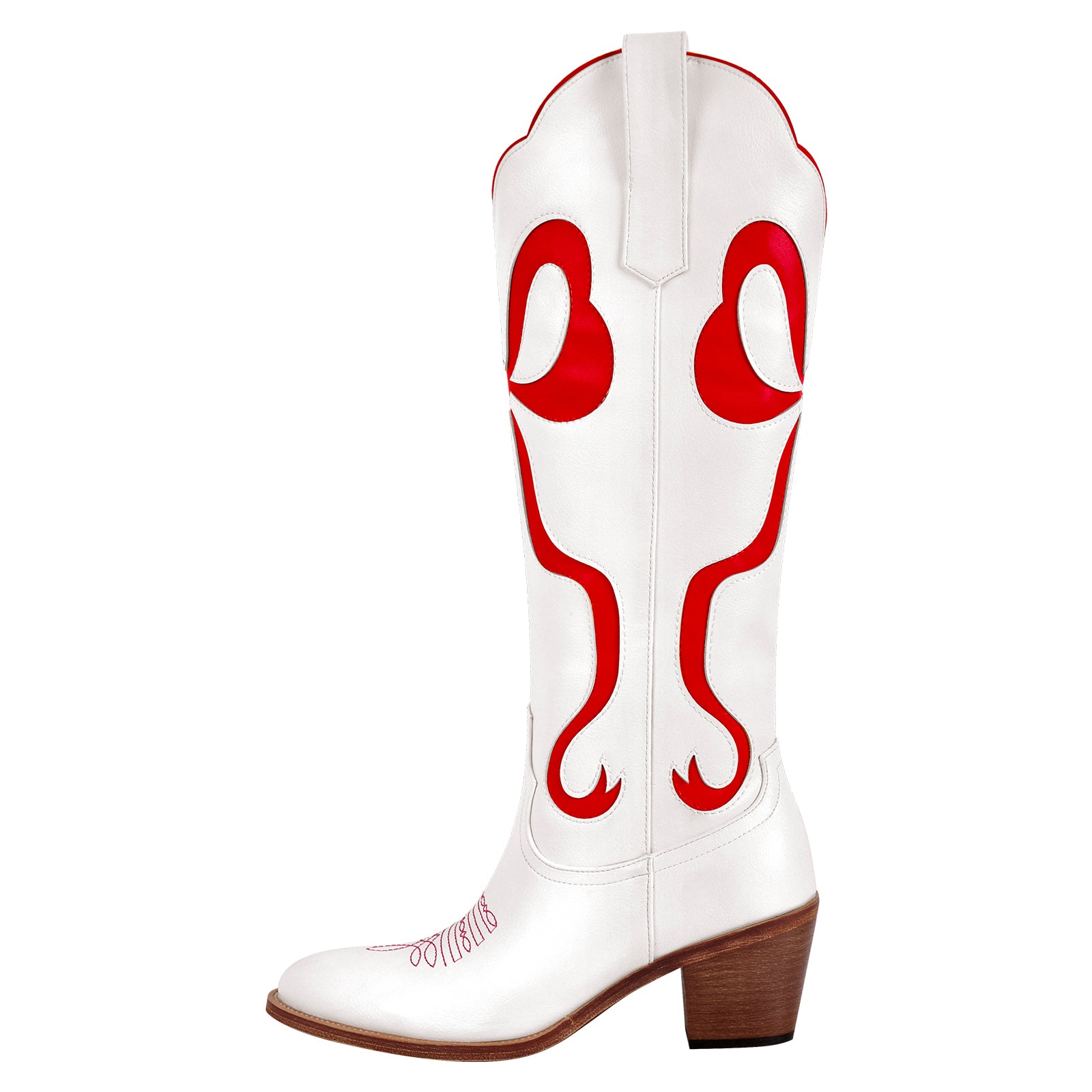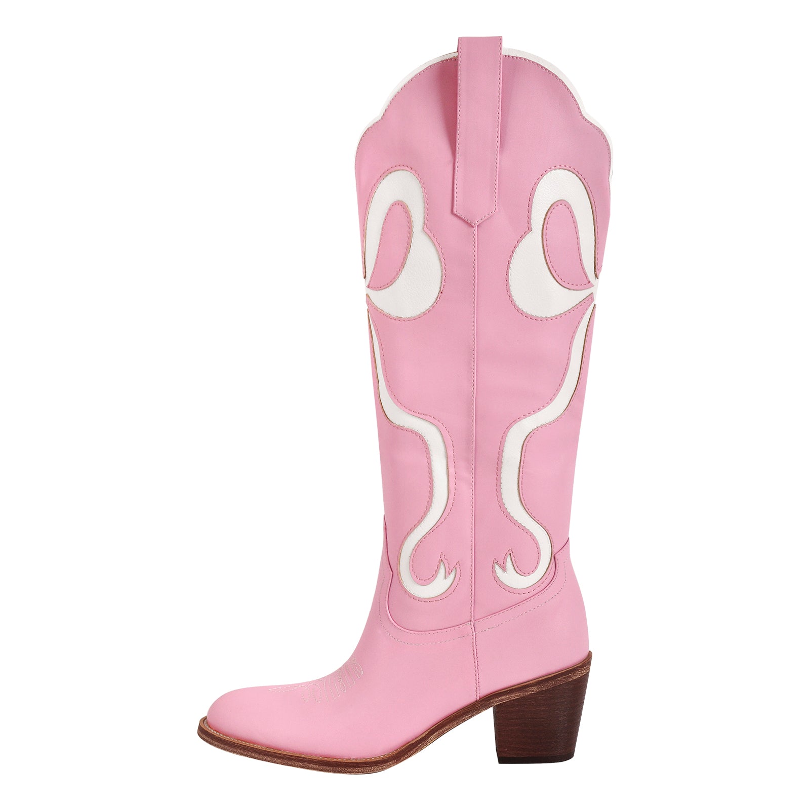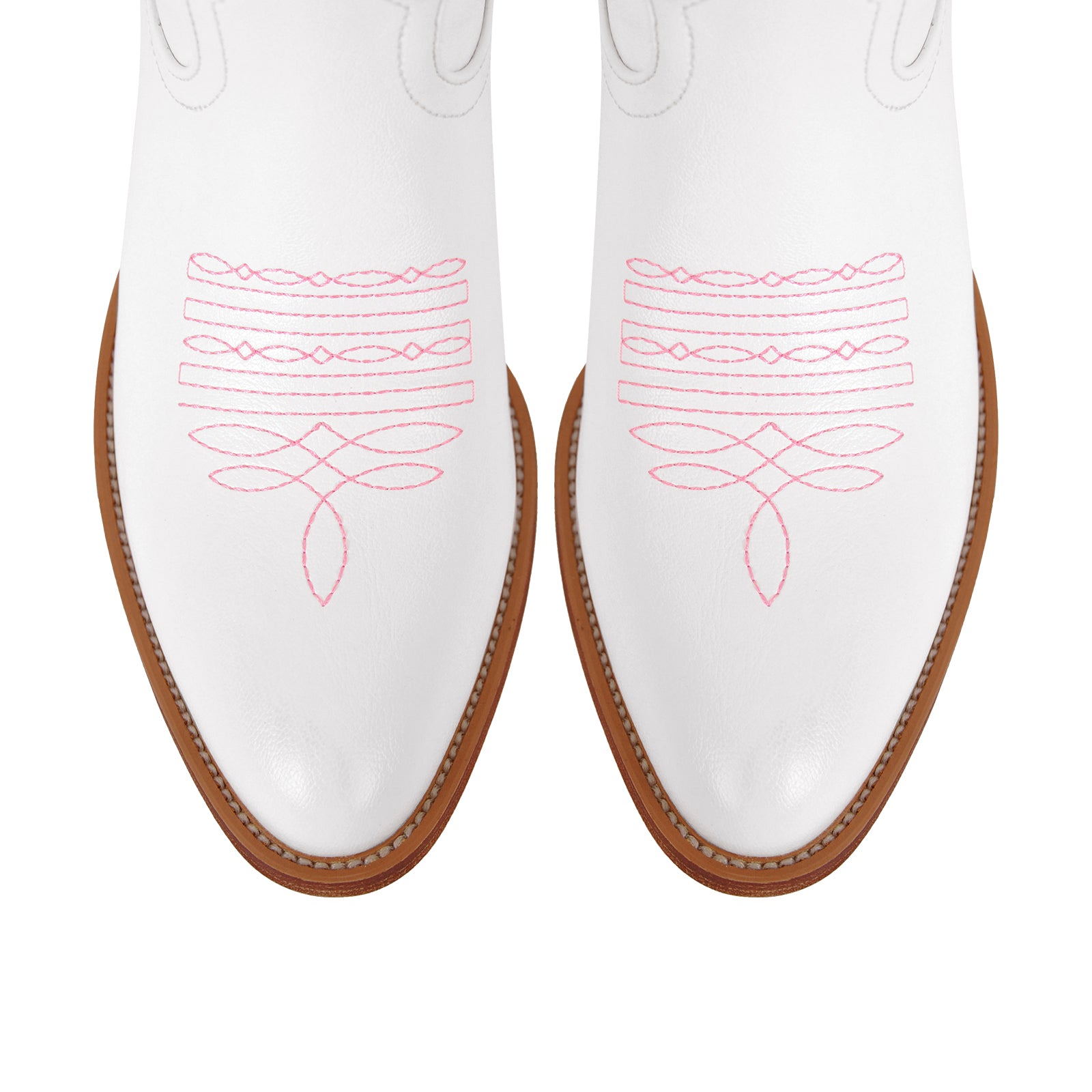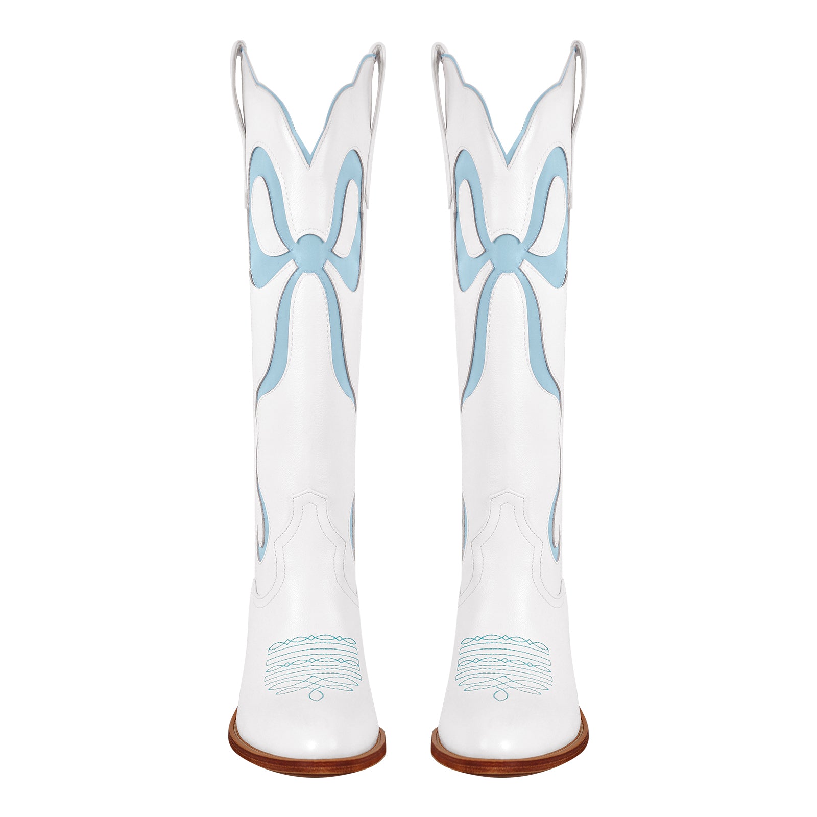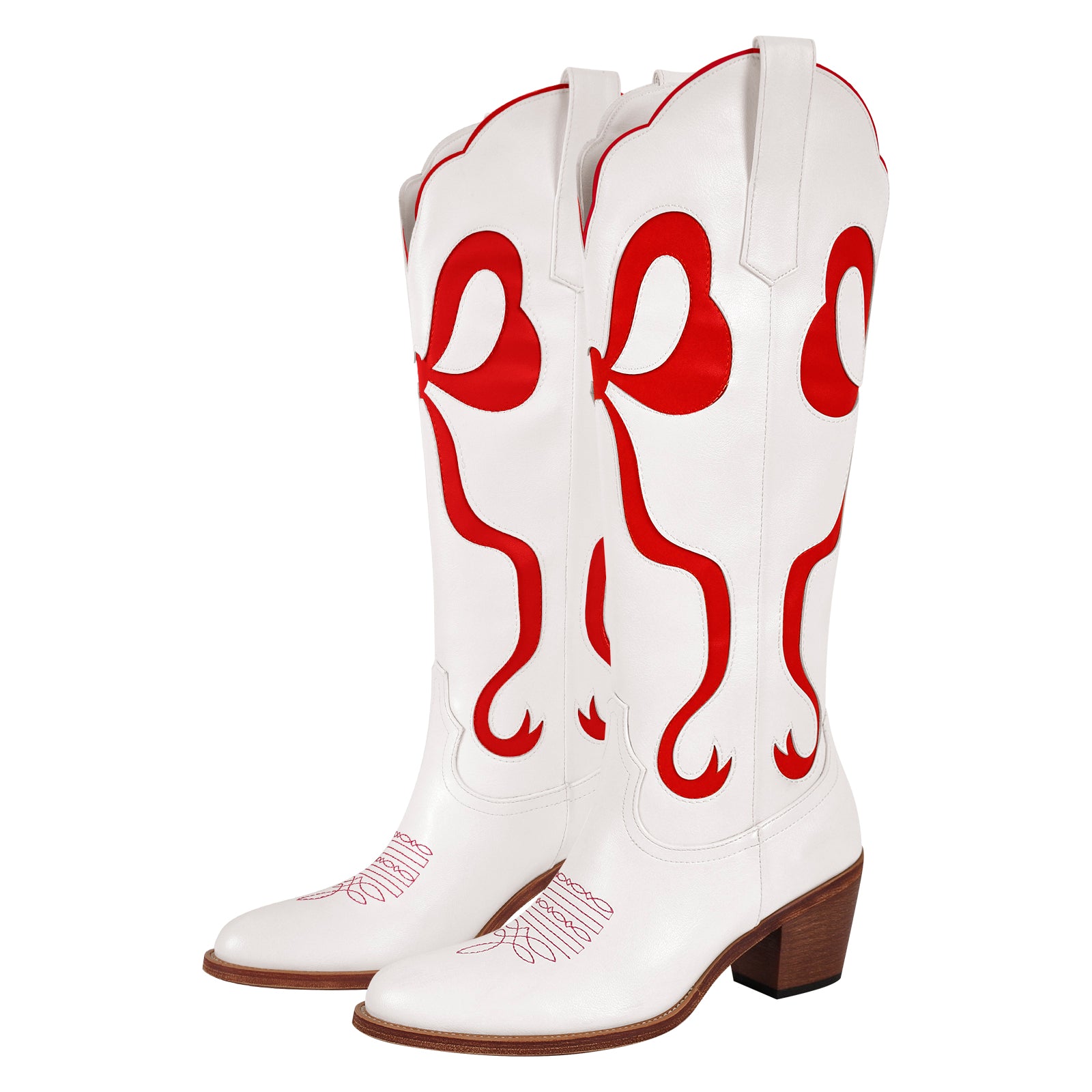 White Pointed Toe Pink Bow Knee High Cowgirl Boots