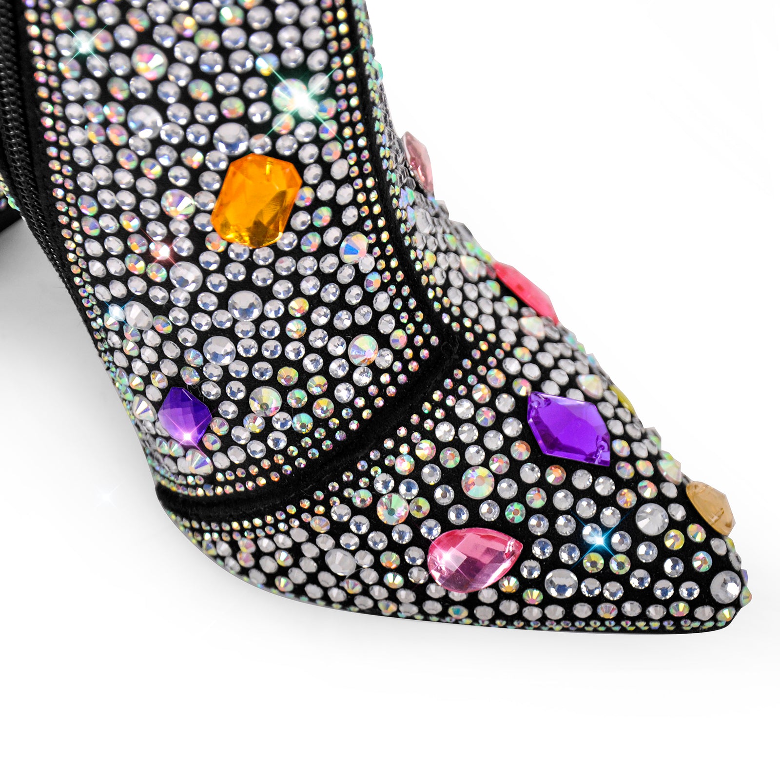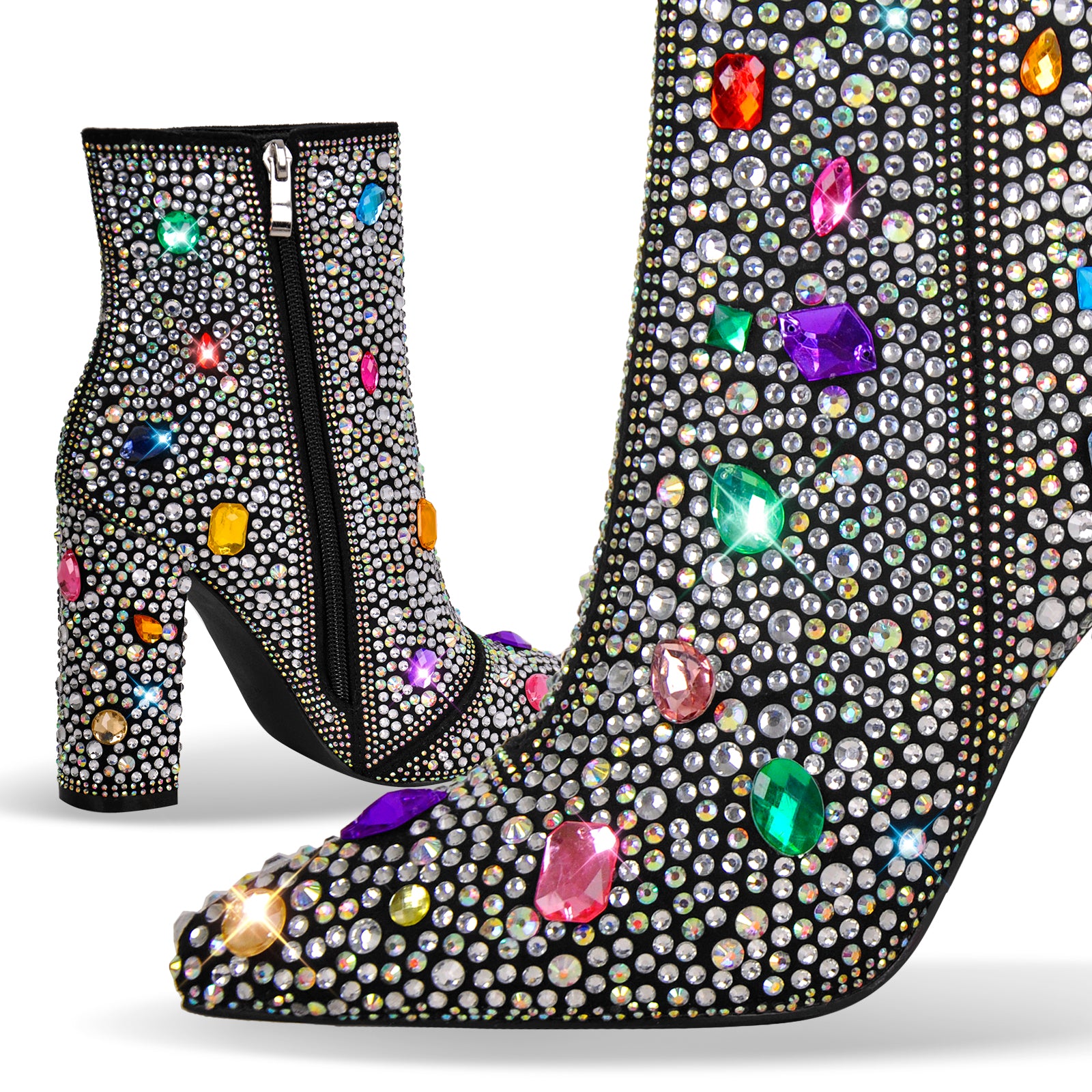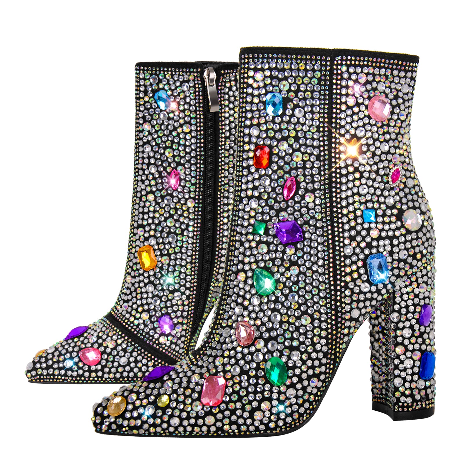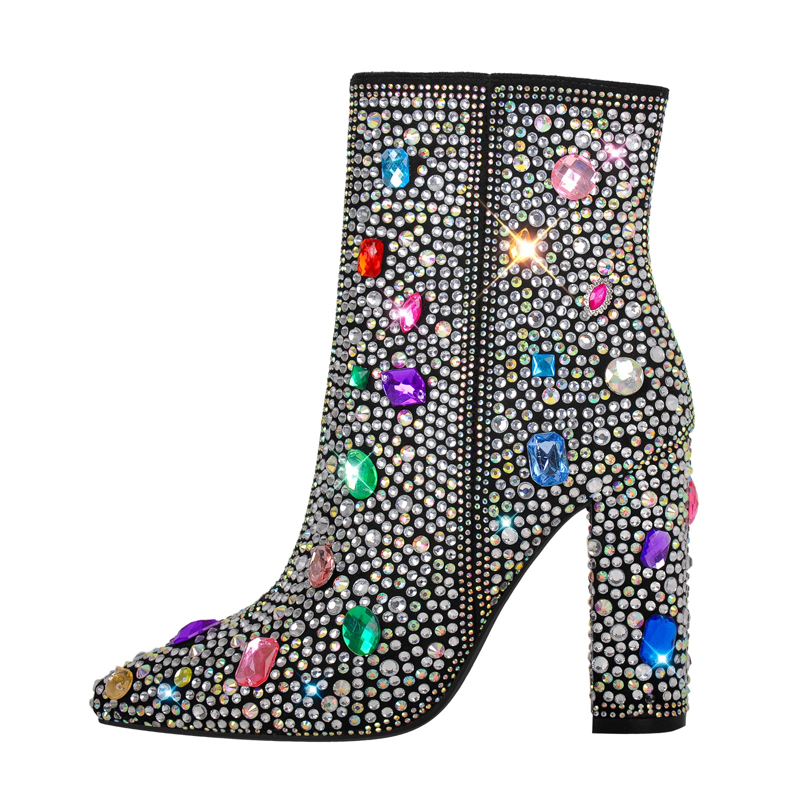 Chunky Heel Rhinestone Jewel Ankle Boots