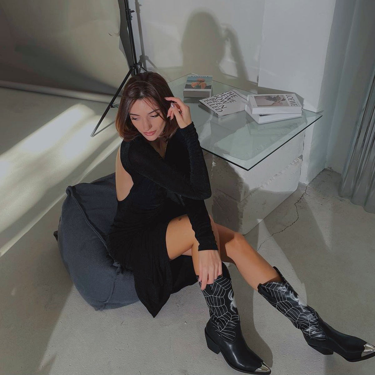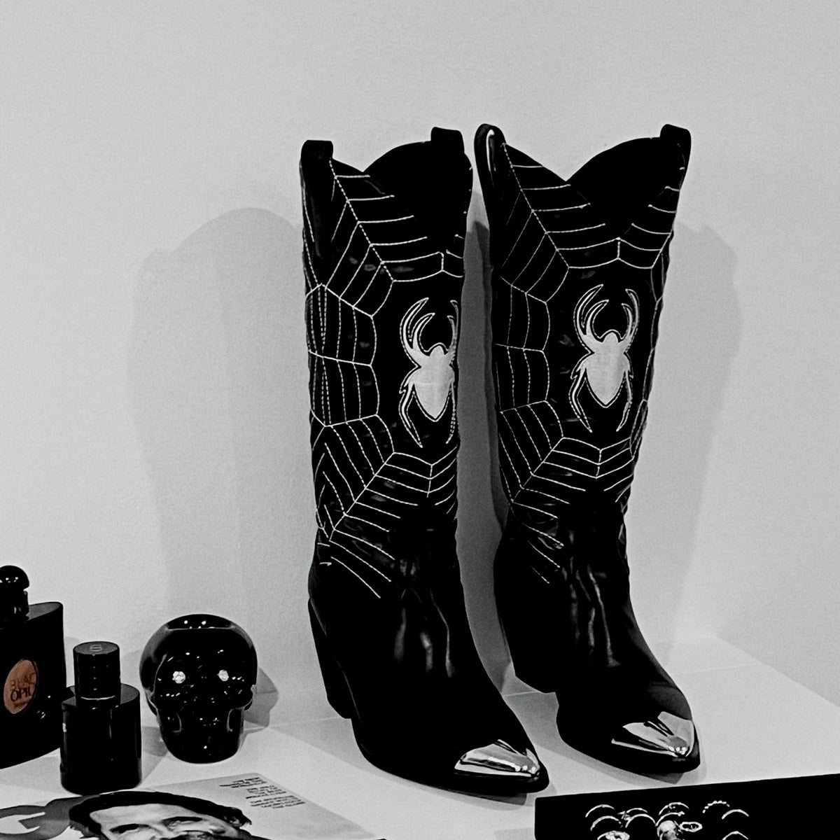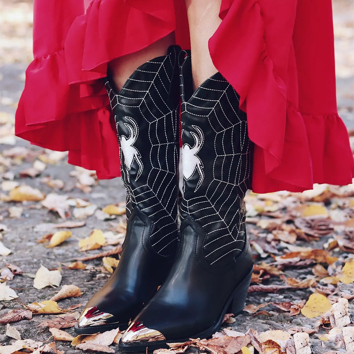Embroidery Spider Webs Metal Pointed Toe Boots