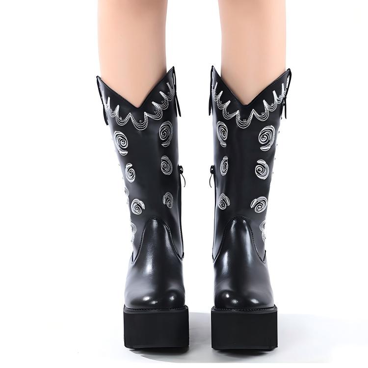 {"id":49552194601197,"title":"Black \/ US5","option1":"Black","option2":"US5","option3":null,"sku":"MH260305A-US5","requires_shipping":true,"taxable":true,"featured_image":{"id":47003232076013,"product_id":9303154229485,"position":1,"created_at":"2026-03-12T14:26:00+08:00","updated_at":"2026-03-12T14:26:23+08:00","alt":null,"width":797,"height":795,"src":"\/\/www.missheel.com\/cdn\/shop\/files\/MH260305A_1.jpg?v=1773296783","variant_ids":[49552194601197,49552194633965,49552194666733,49552194699501,49552194732269,49552194765037,49552194797805,49552194830573]},"available":true,"name":"Platform Embroidery Western Mid-Calf Boots - Black \/ US5","public_title":"Black \/ US5","options":["Black","US5"],"price":6999,"weight":1800,"compare_at_price":9999,"inventory_management":"shopify","barcode":null,"featured_media":{"alt":null,"id":38545561256173,"position":1,"preview_image":{"aspect_ratio":1.003,"height":795,"width":797,"src":"\/\/www.missheel.com\/cdn\/shop\/files\/MH260305A_1.jpg?v=1773296783"}},"requires_selling_plan":false,"selling_plan_allocations":[]}