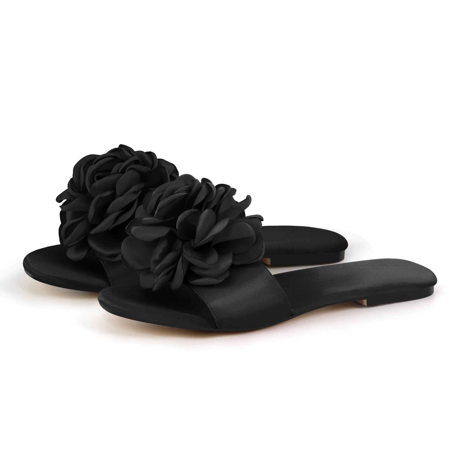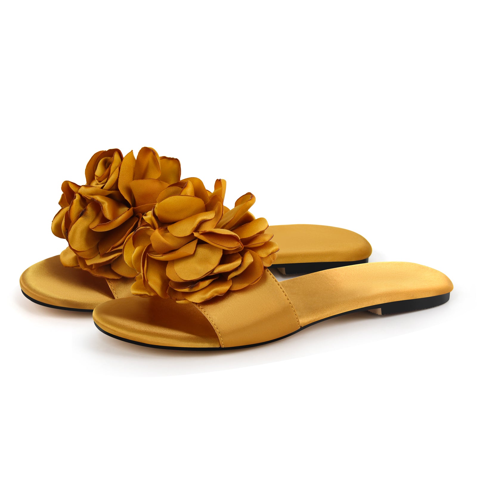 Round Toe Flower Satin Sandals Flats