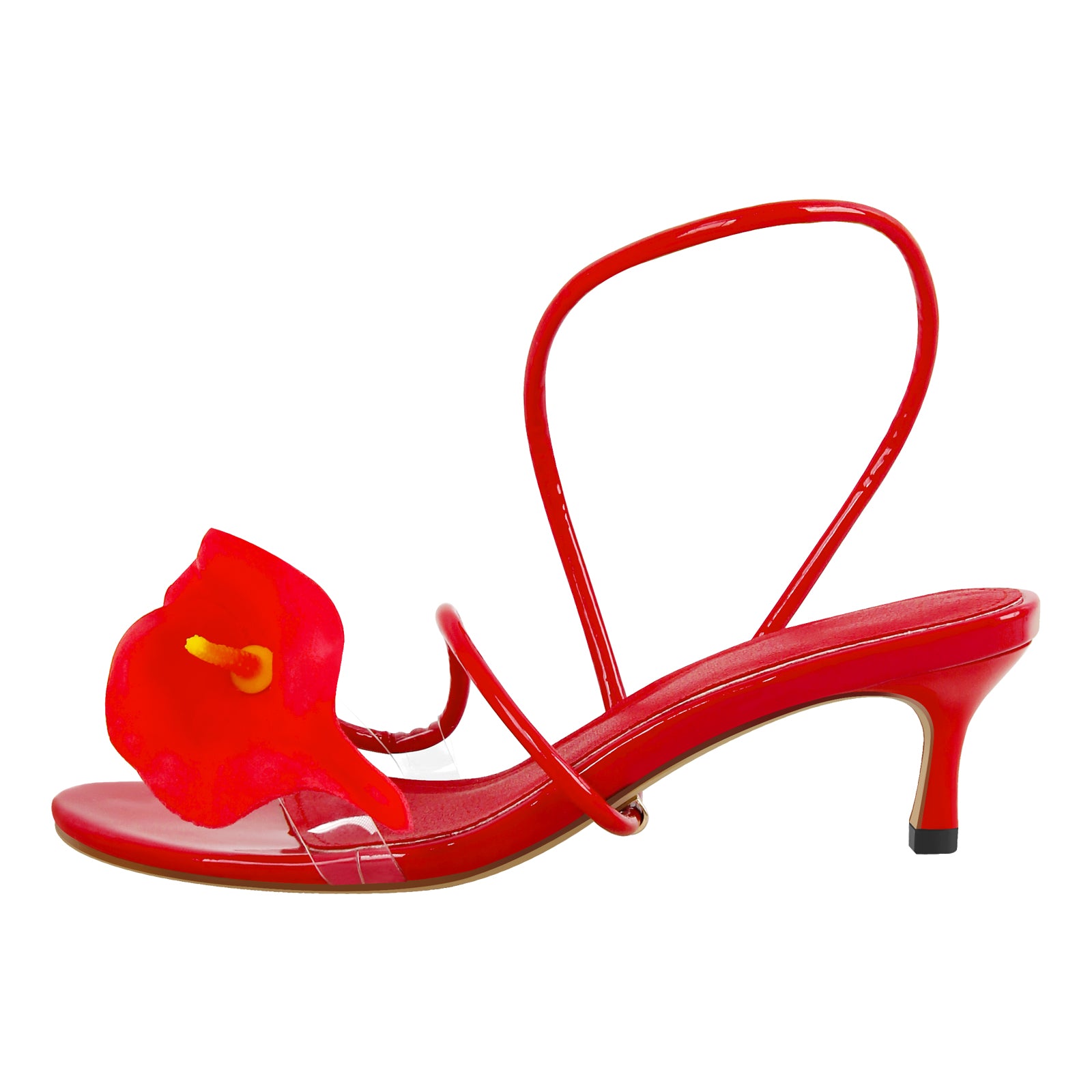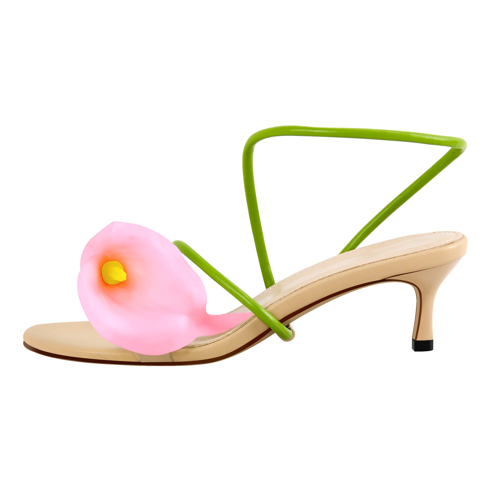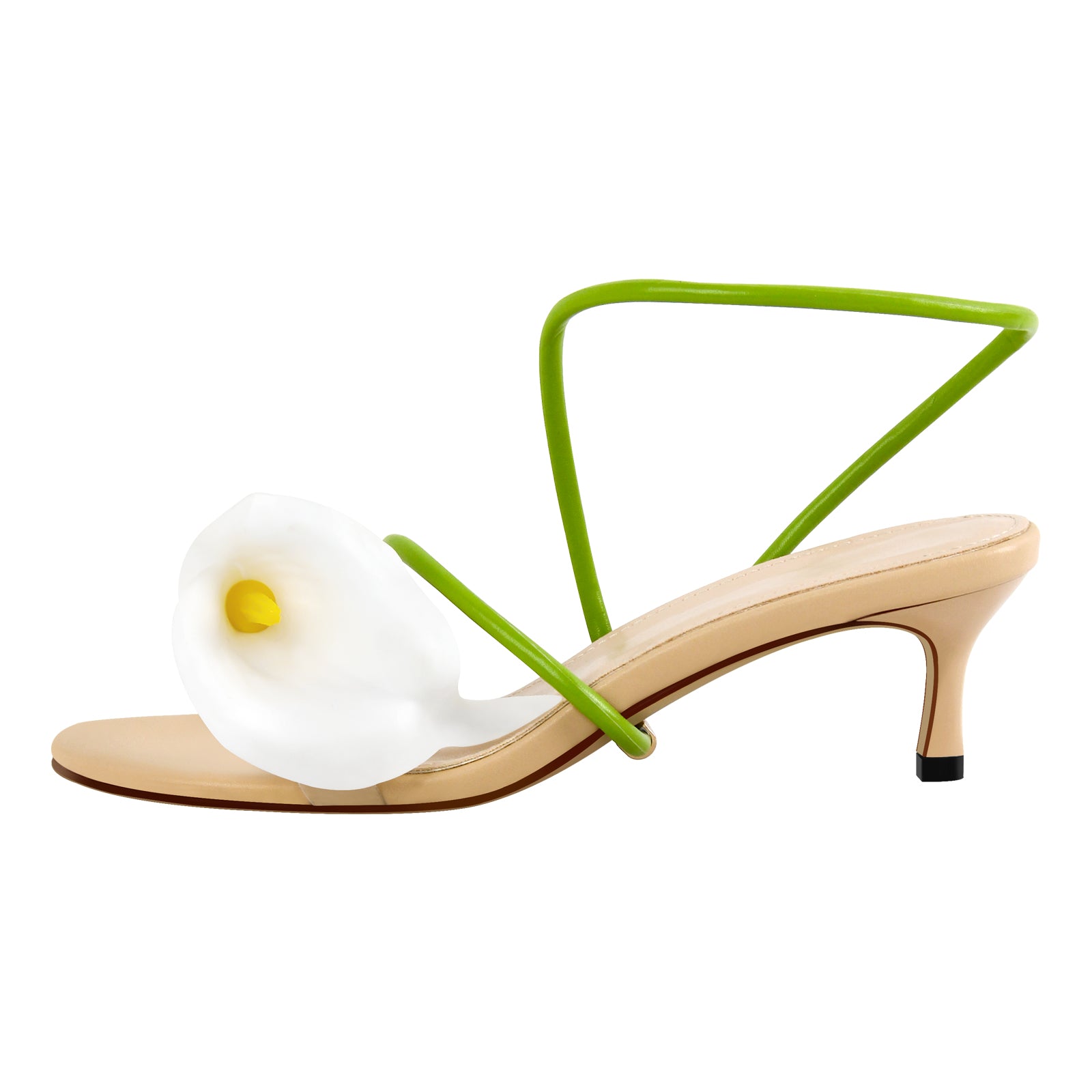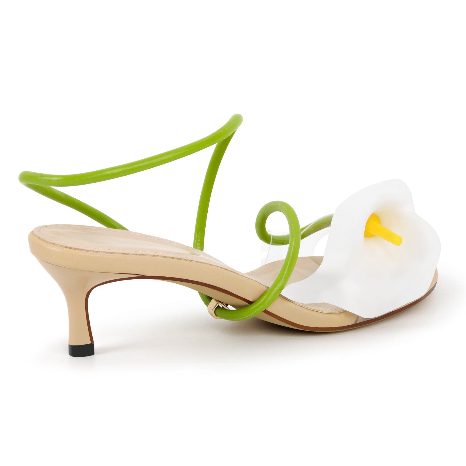 Round Toe Calla Lily Kitten Heel Sandals