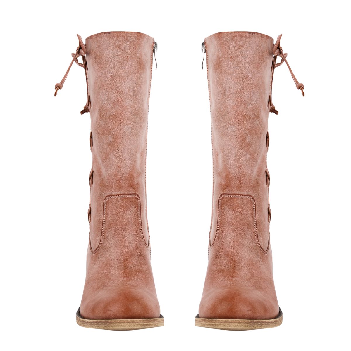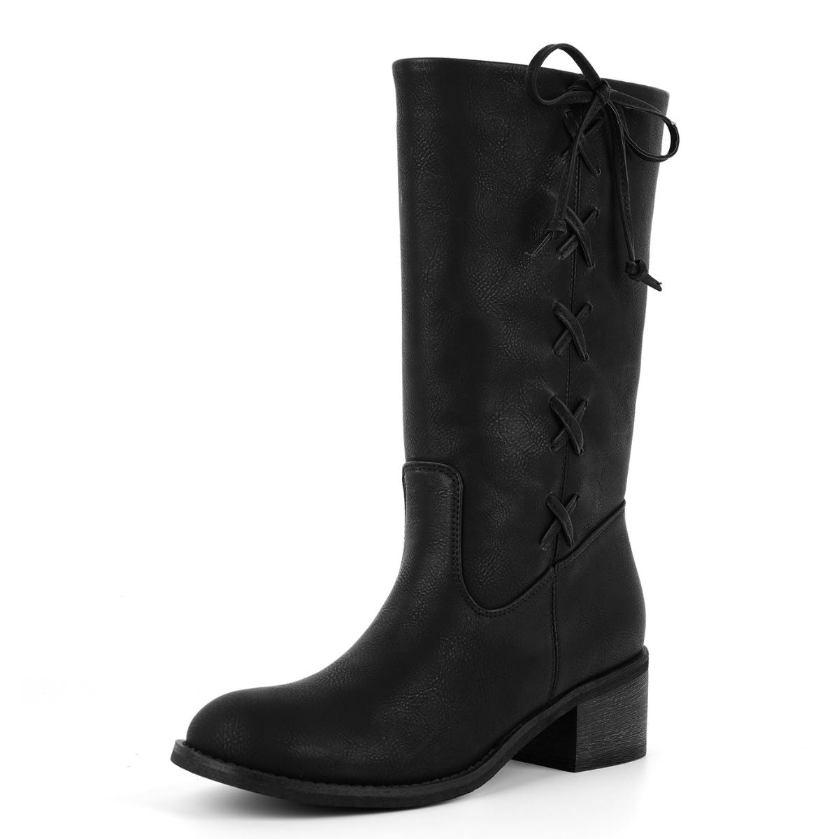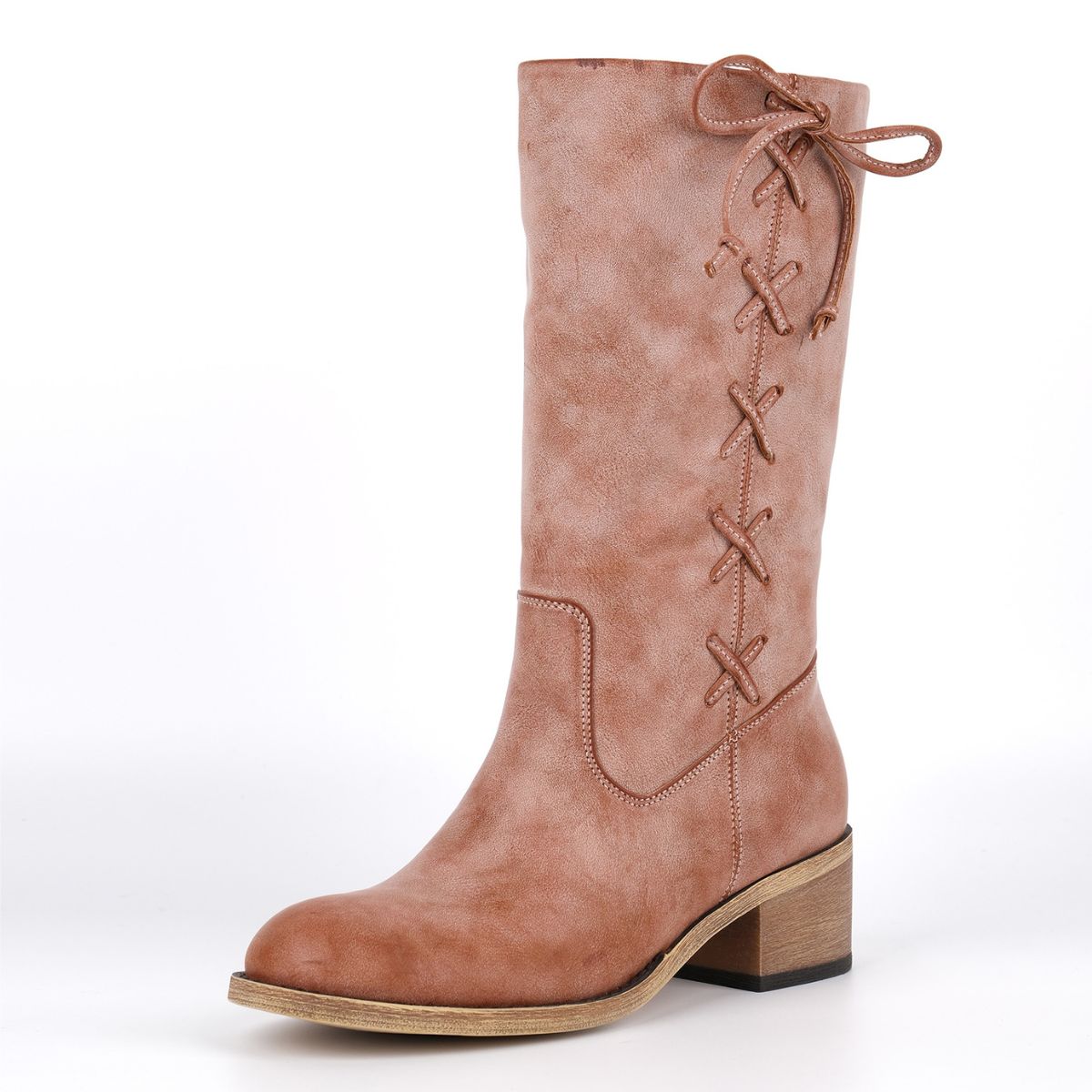 Round Toe Side Lace-up Zipper Mid-Calf Boots