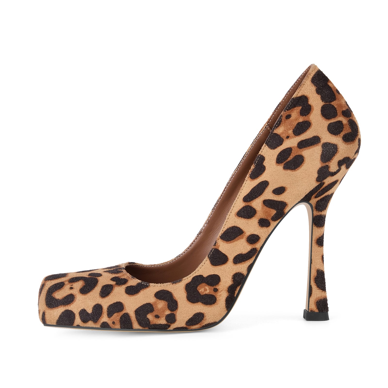Square Toe Leopard Suede Stiletto Pumps