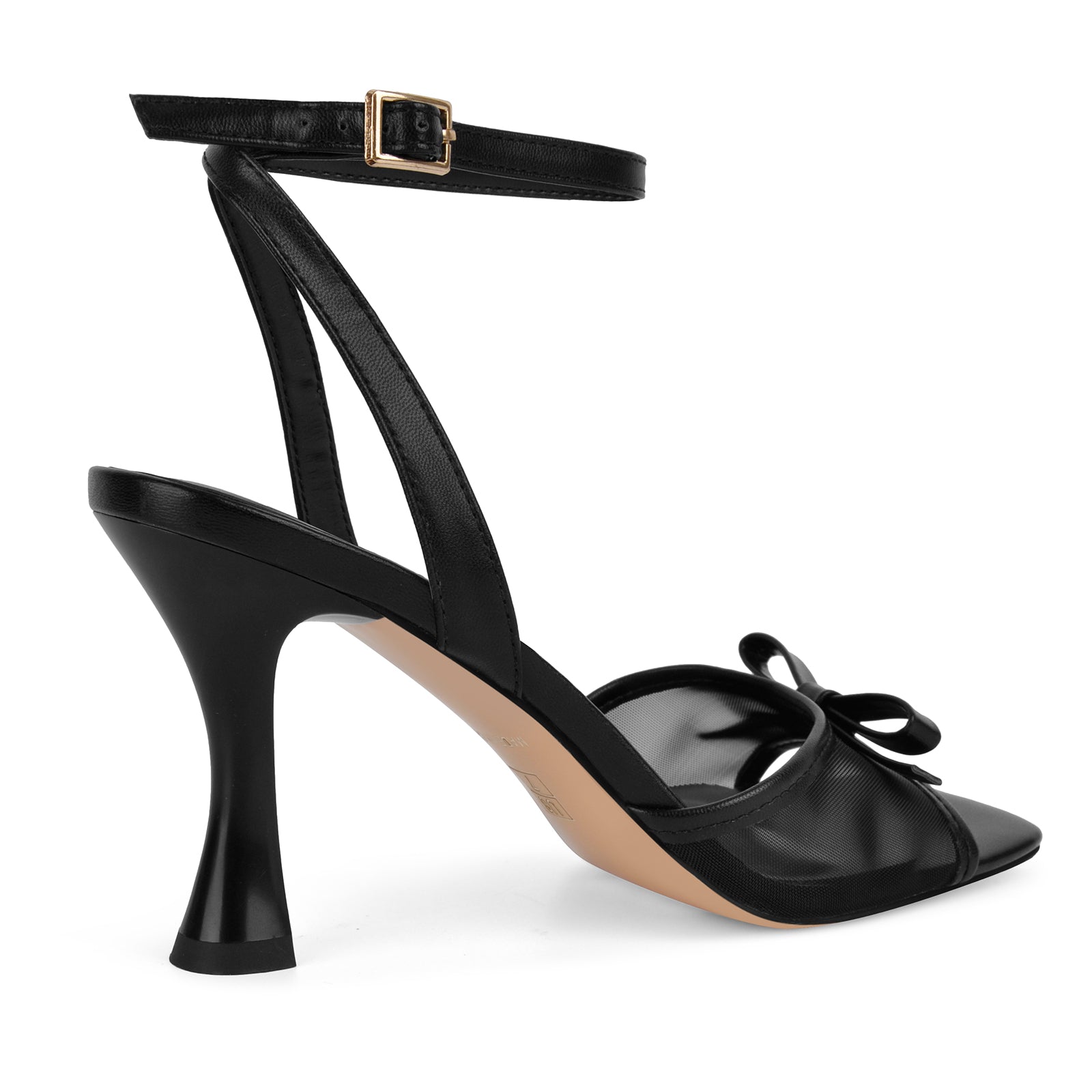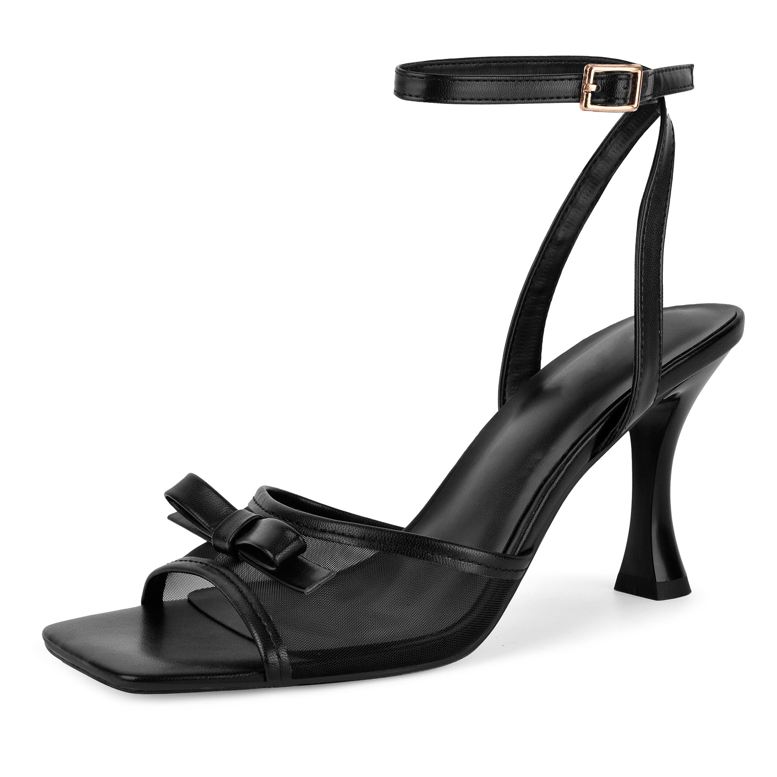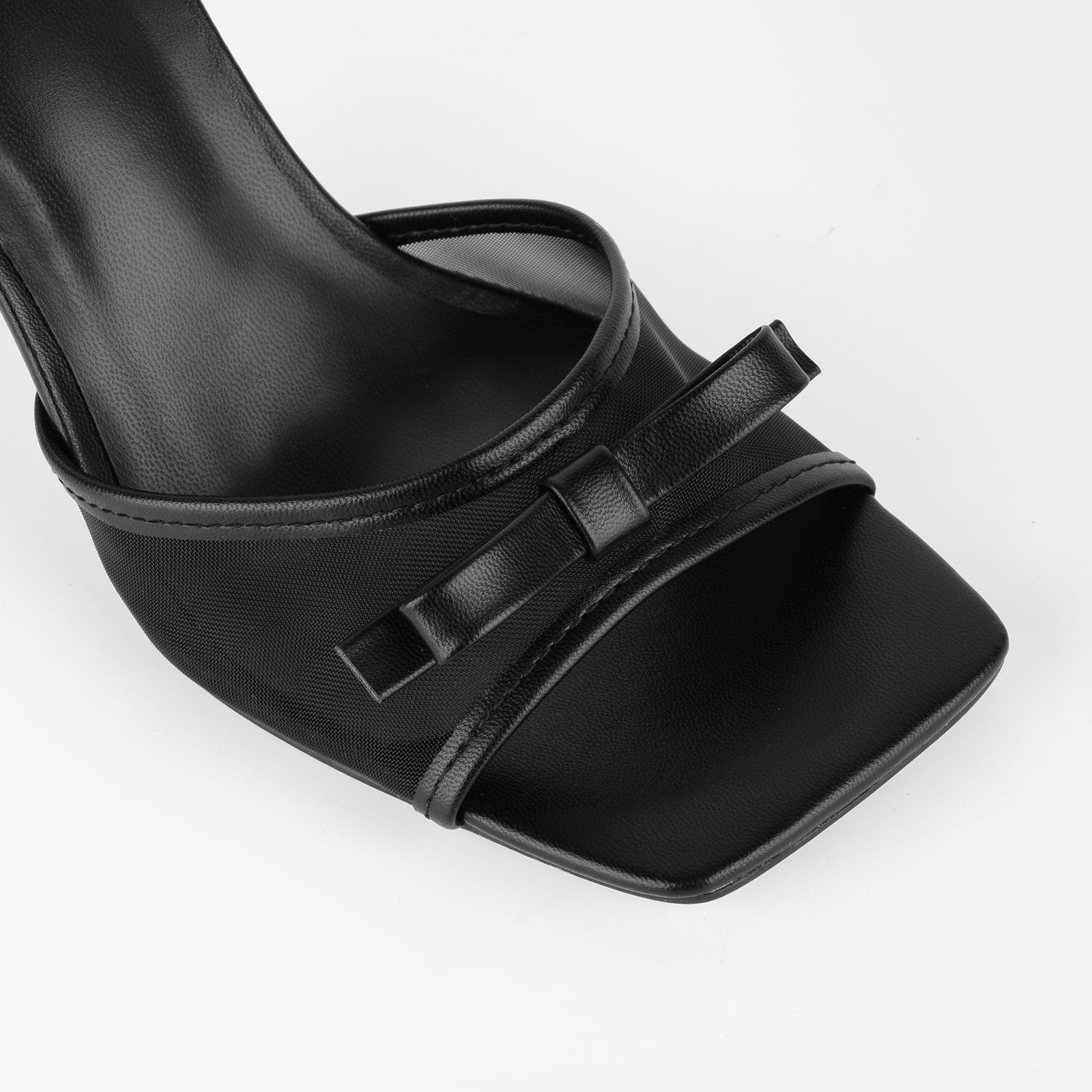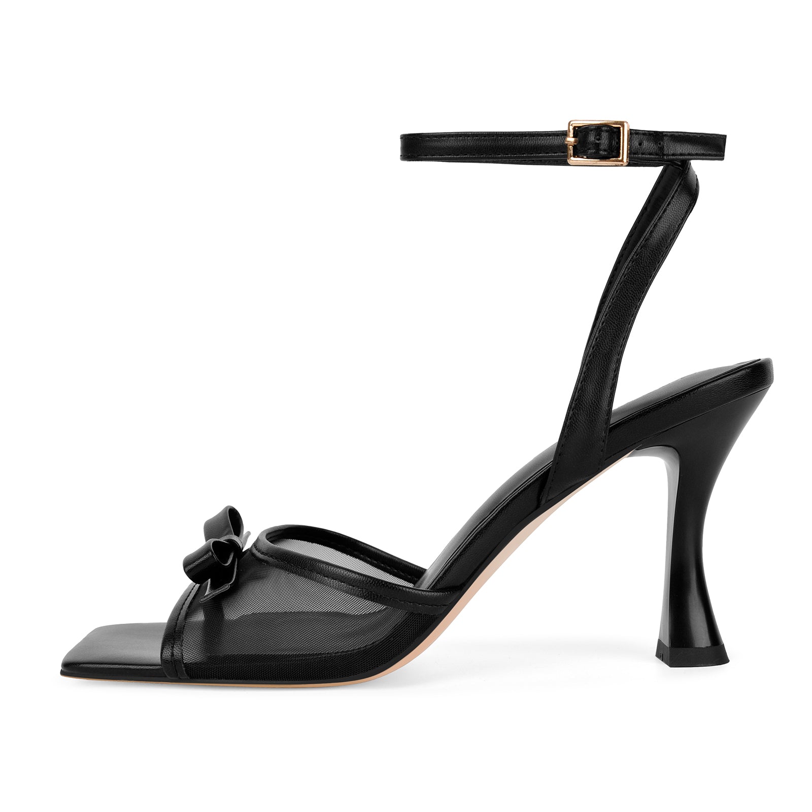 Mesh Square Toe Bow Ankle Strap Sandals