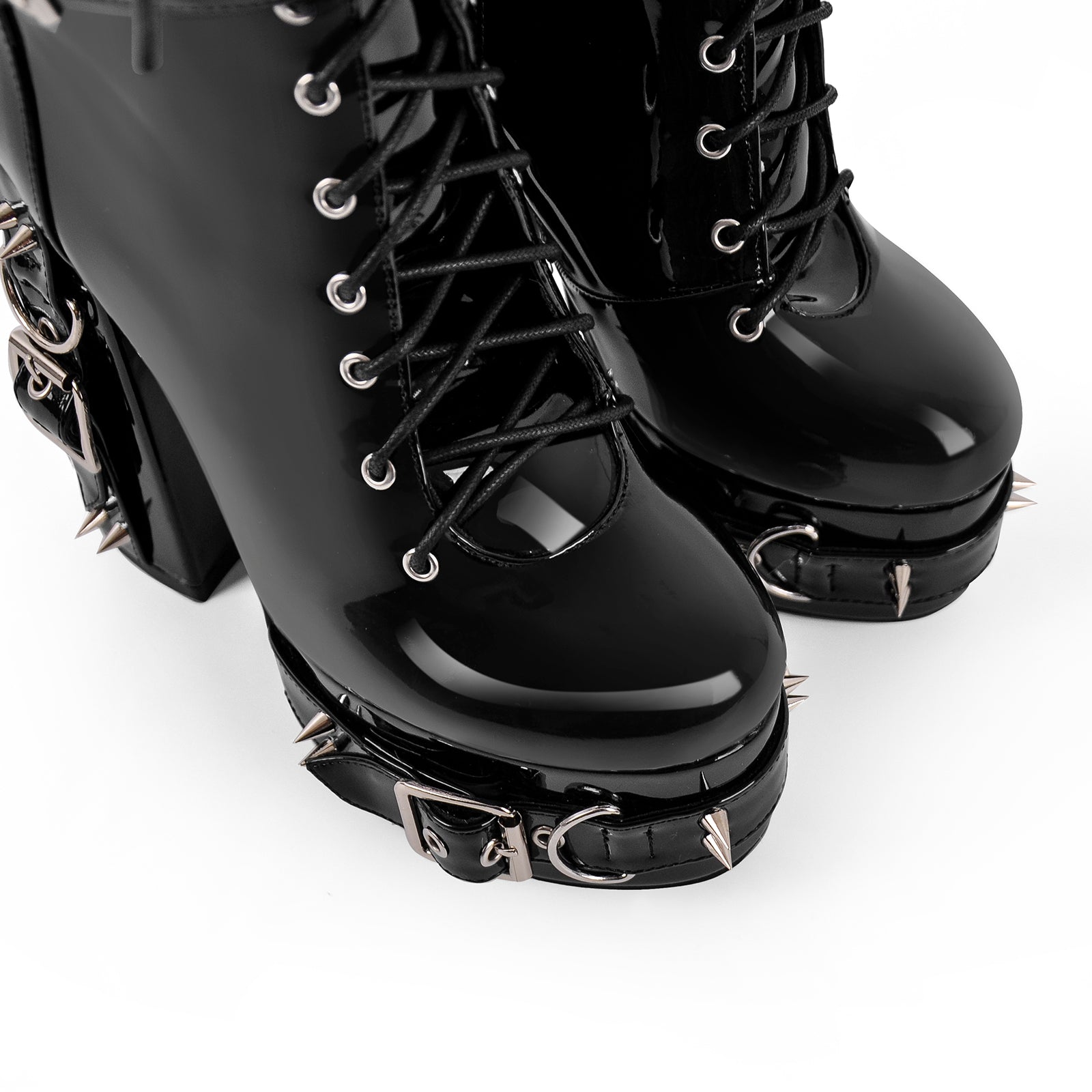 Metal Rivet Buckle Lace-up Platform Ankle Boots